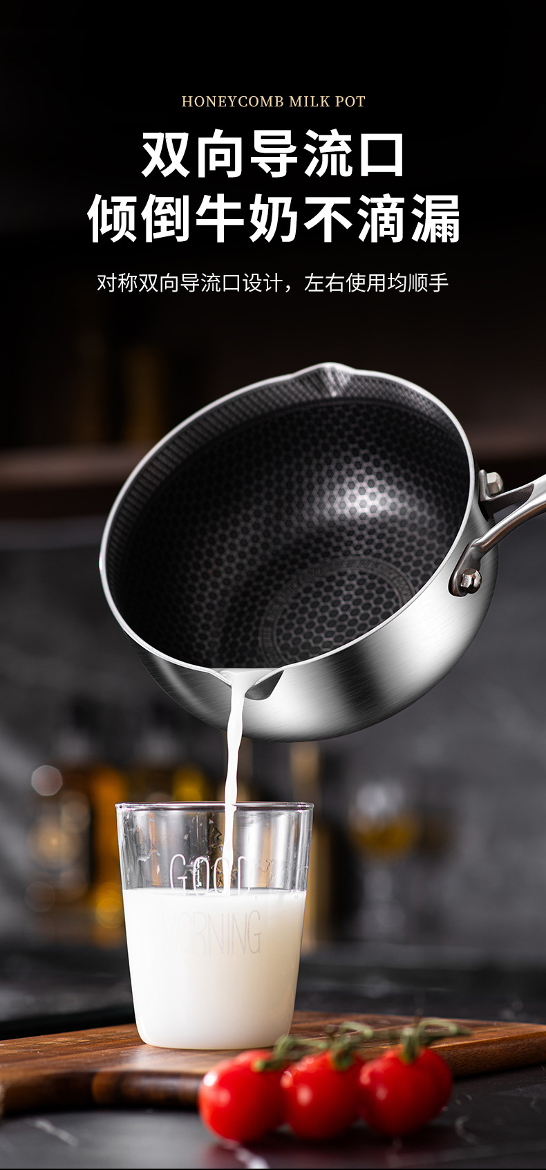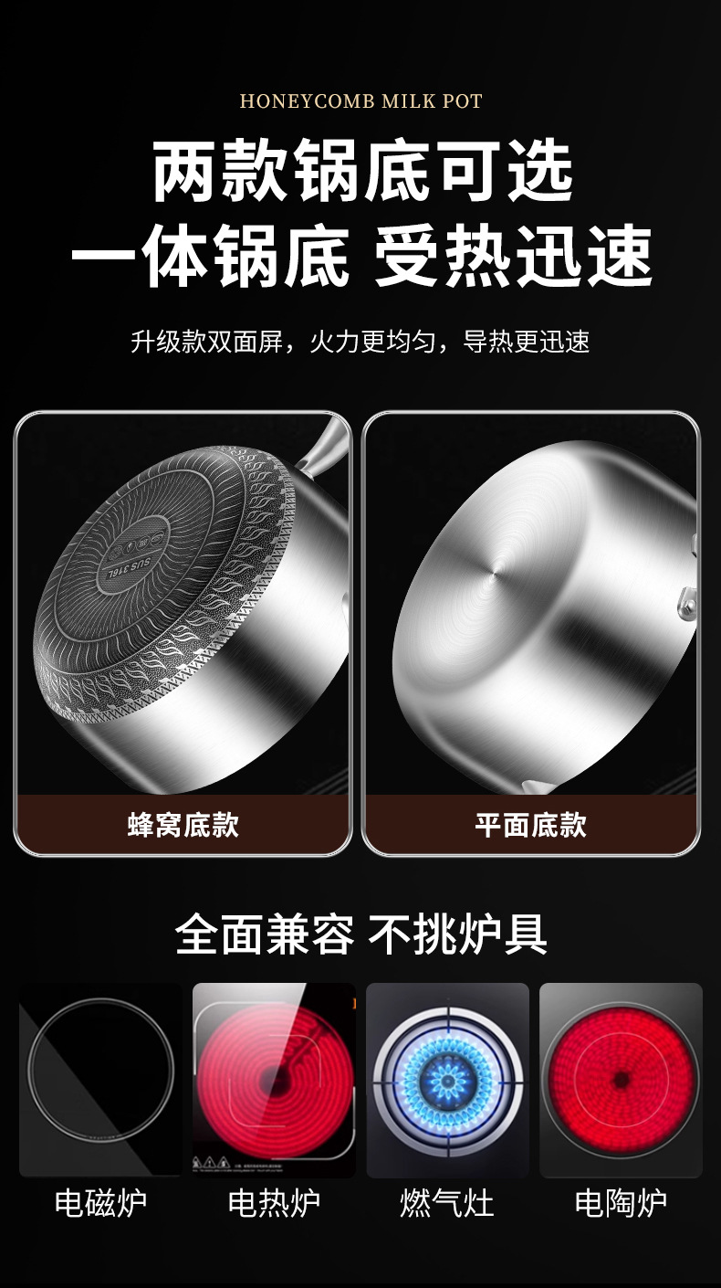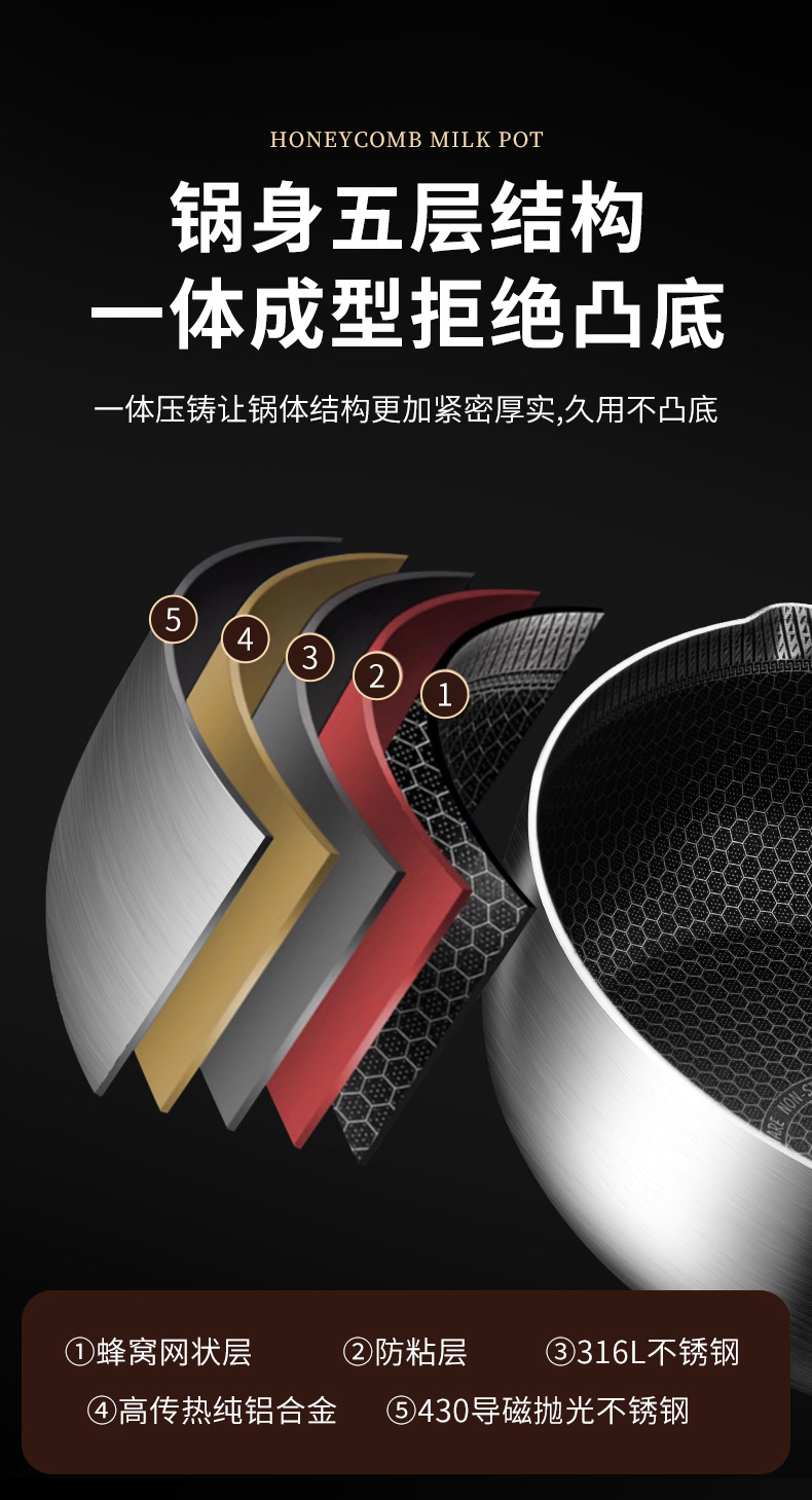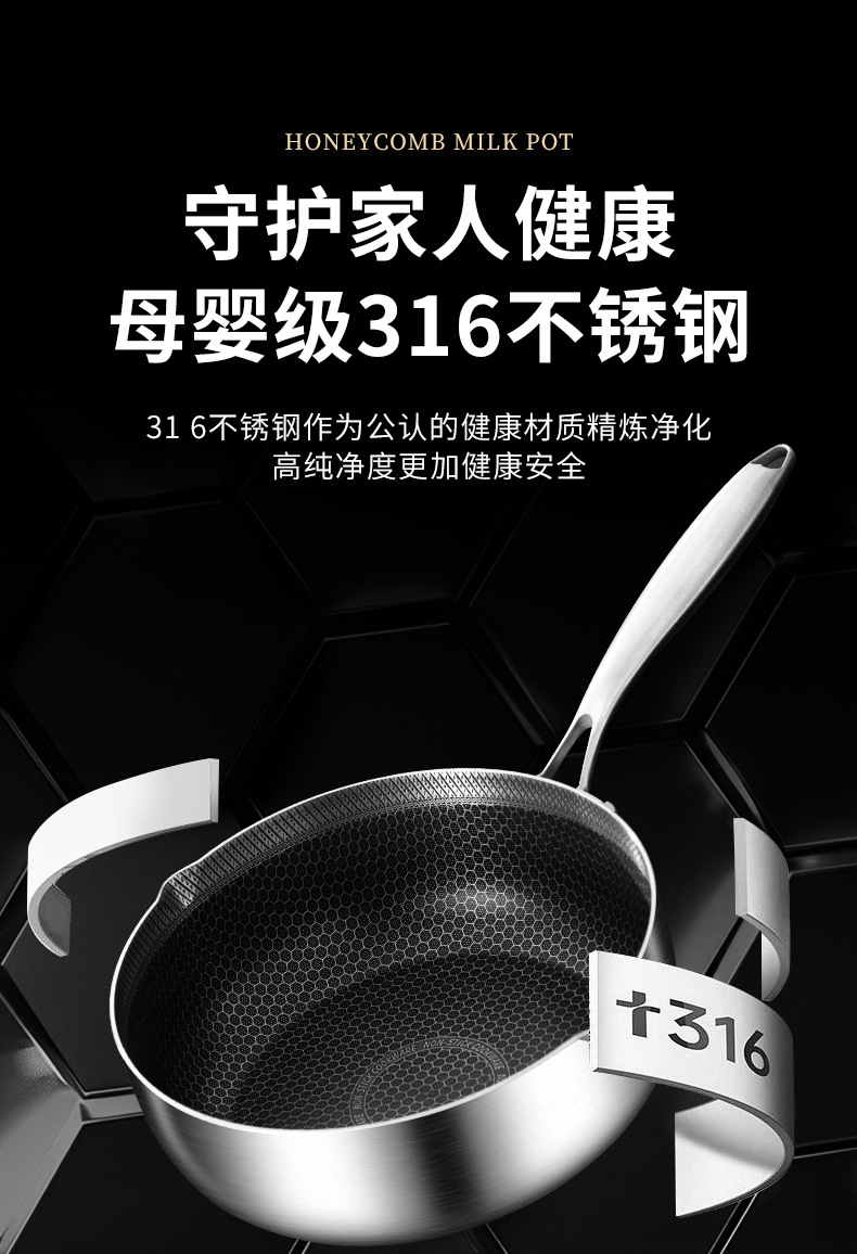 18cm double-sided honeycomb milk pot [without pot cover] 316 material