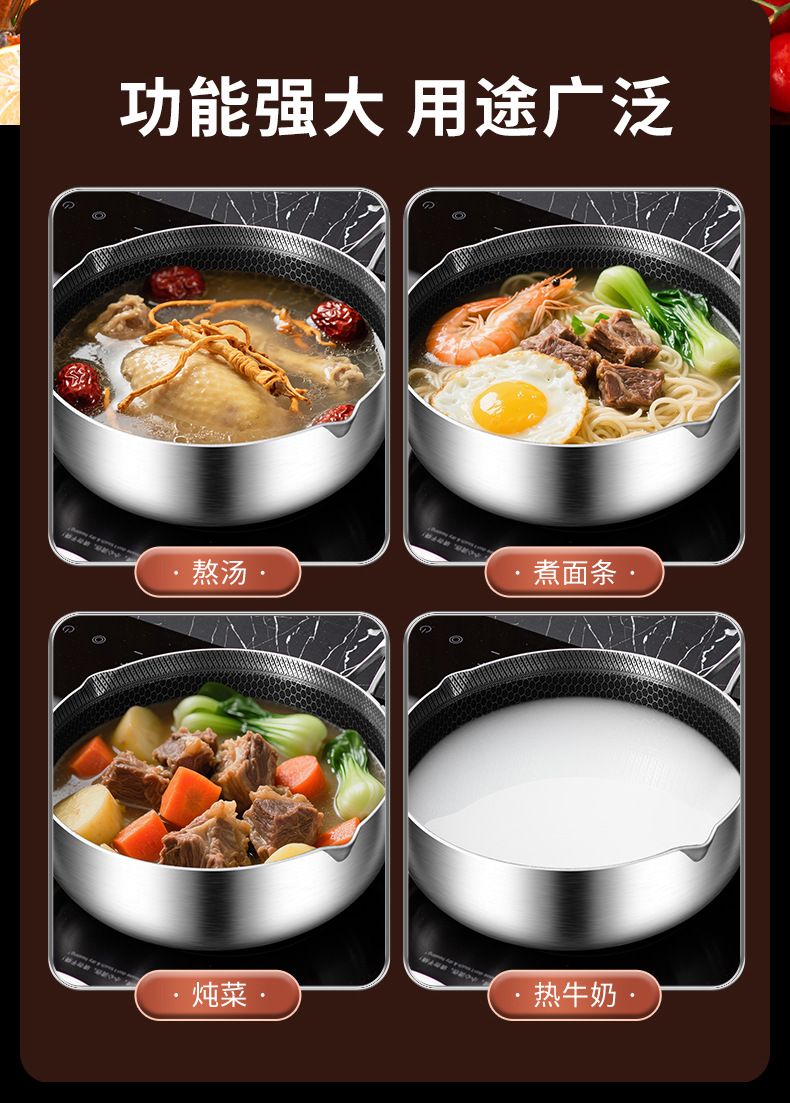 24cm double-sided honeycomb milk pot [with pot lid] 316 material