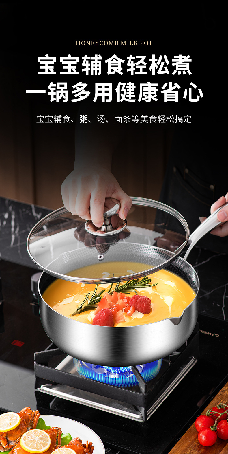 18cm double-sided honeycomb milk pot [with pot lid] 316 material