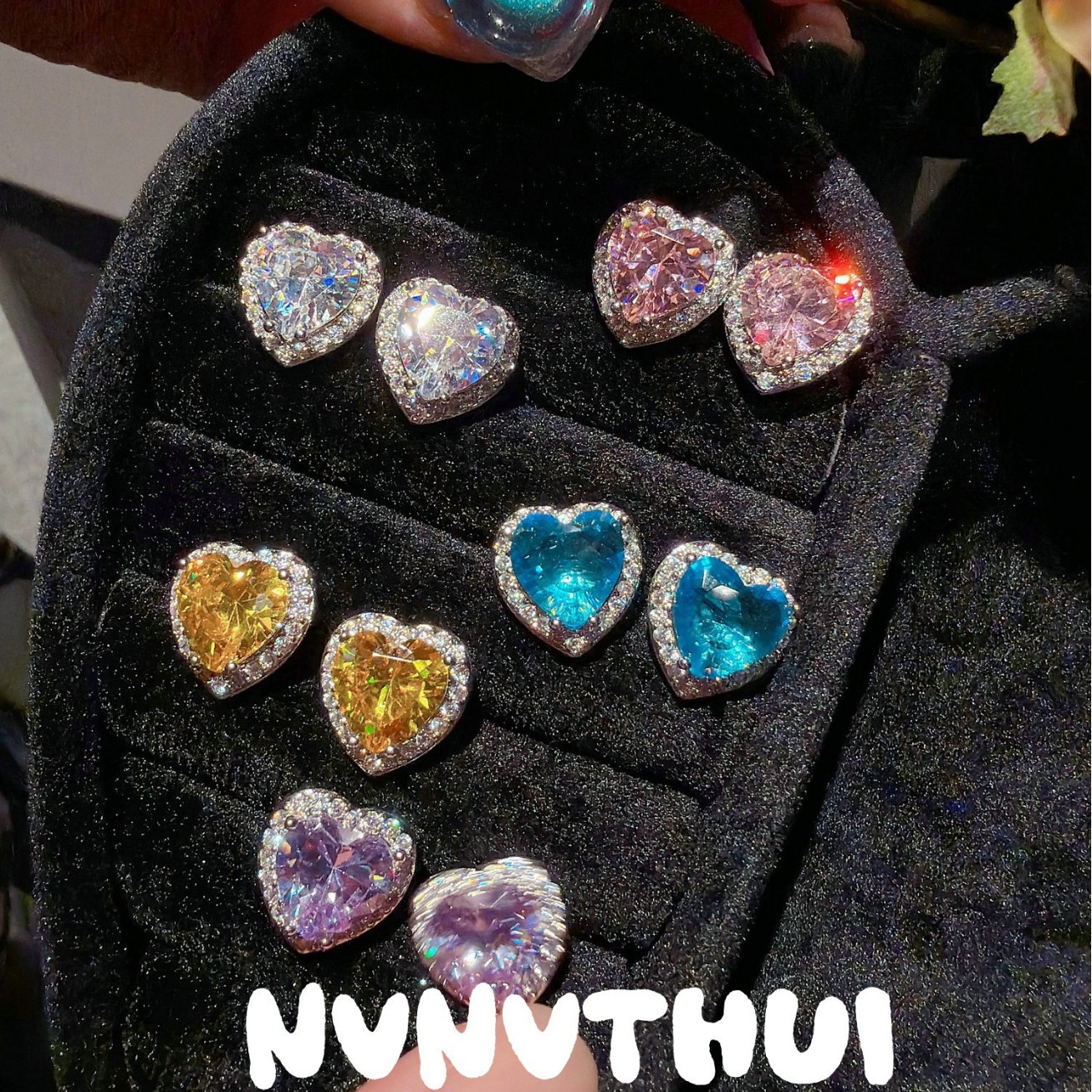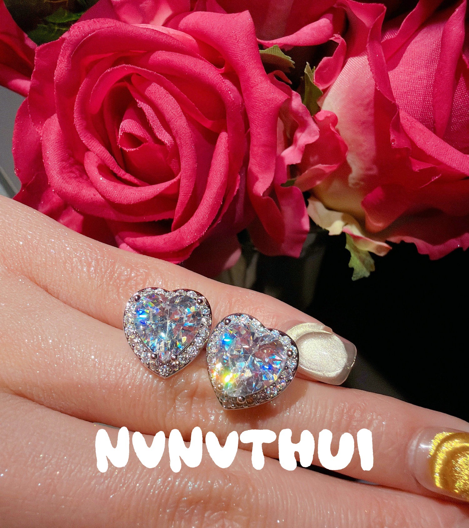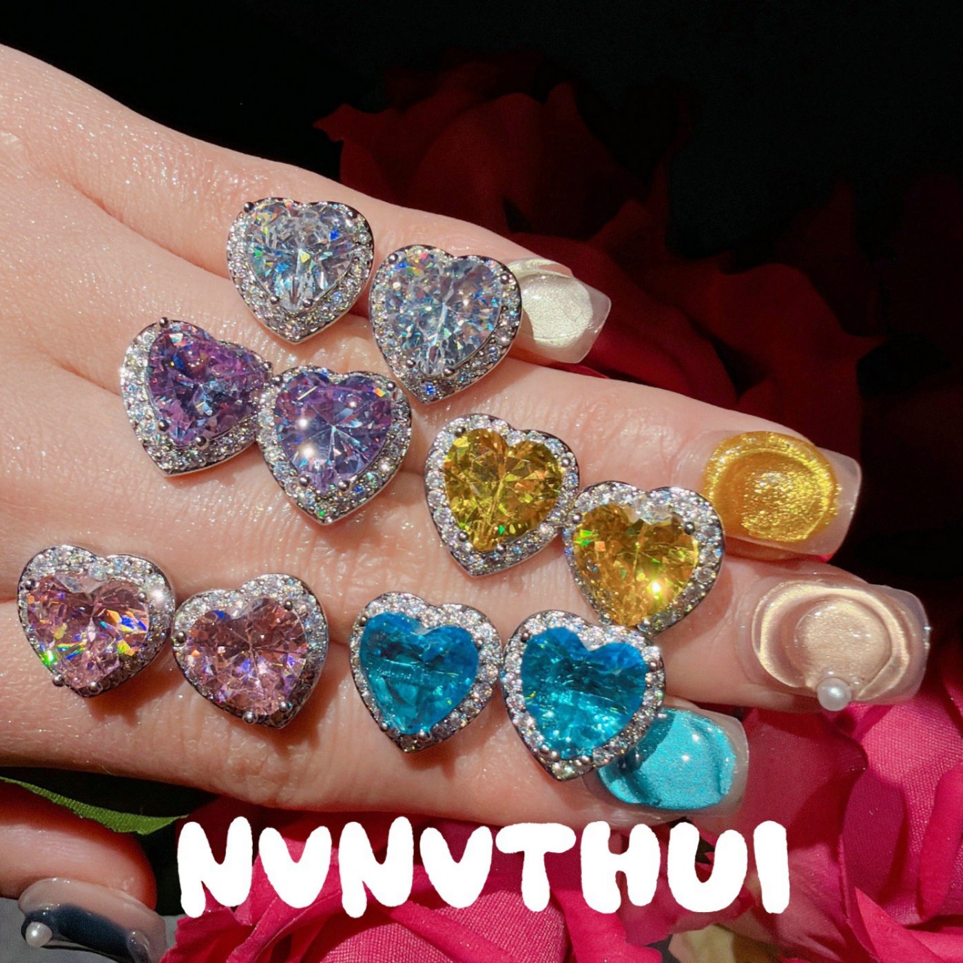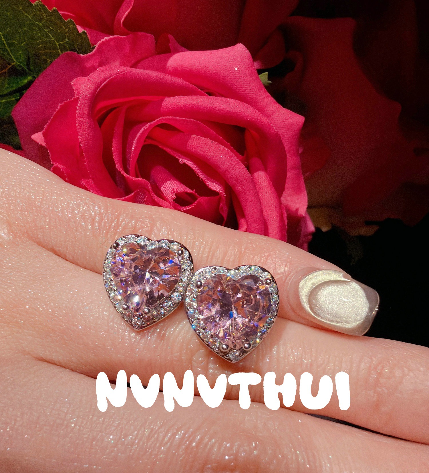 3718xix [public powder] love heart stud earrings ~ no box