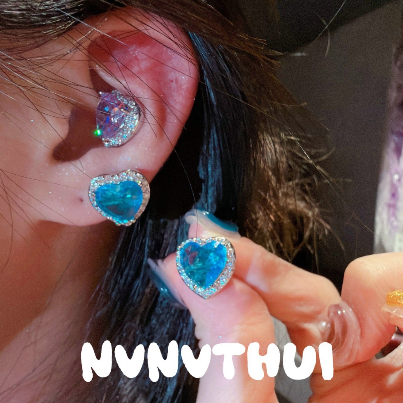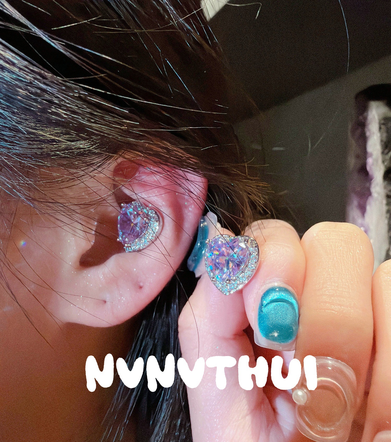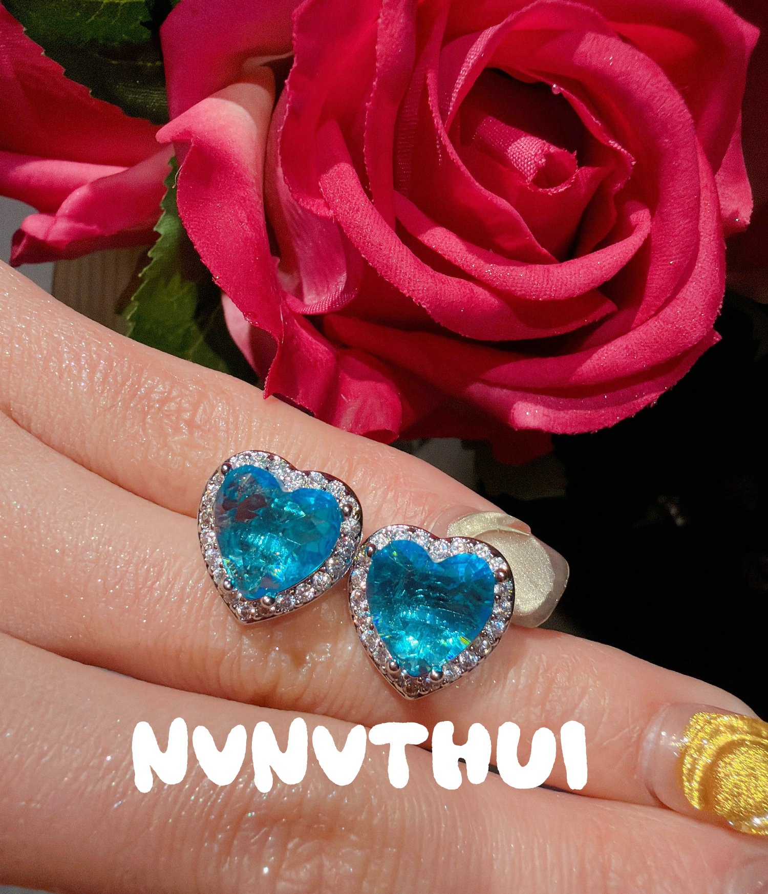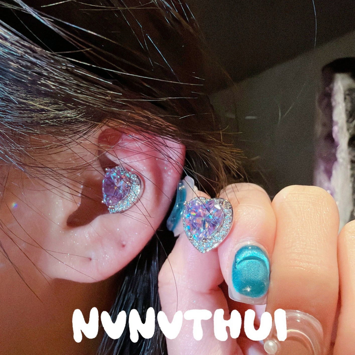 3718xix [mopping pad blue] love heart stud earrings ~ no box
