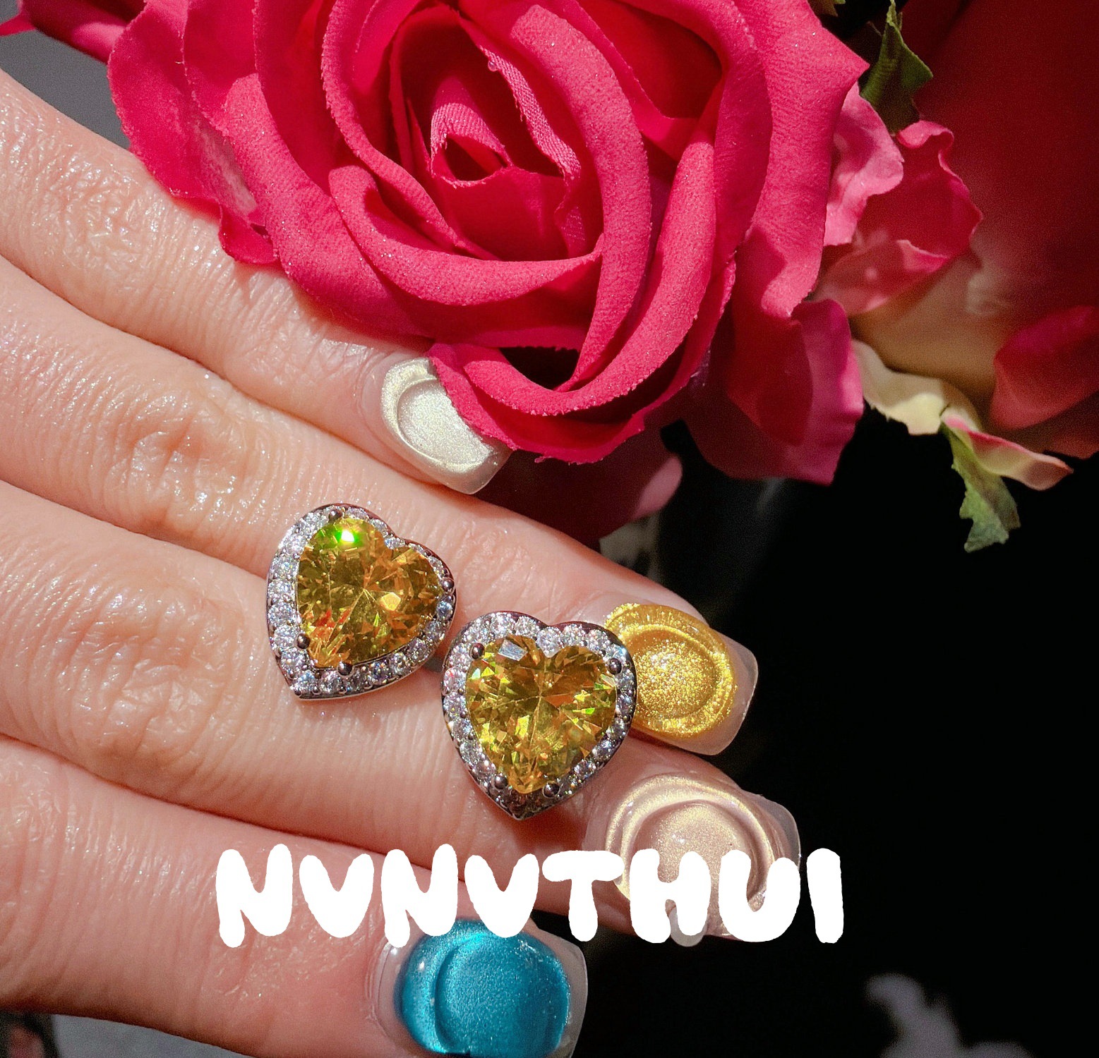 3718xix [goose yellow] love heart stud earrings ~ no box