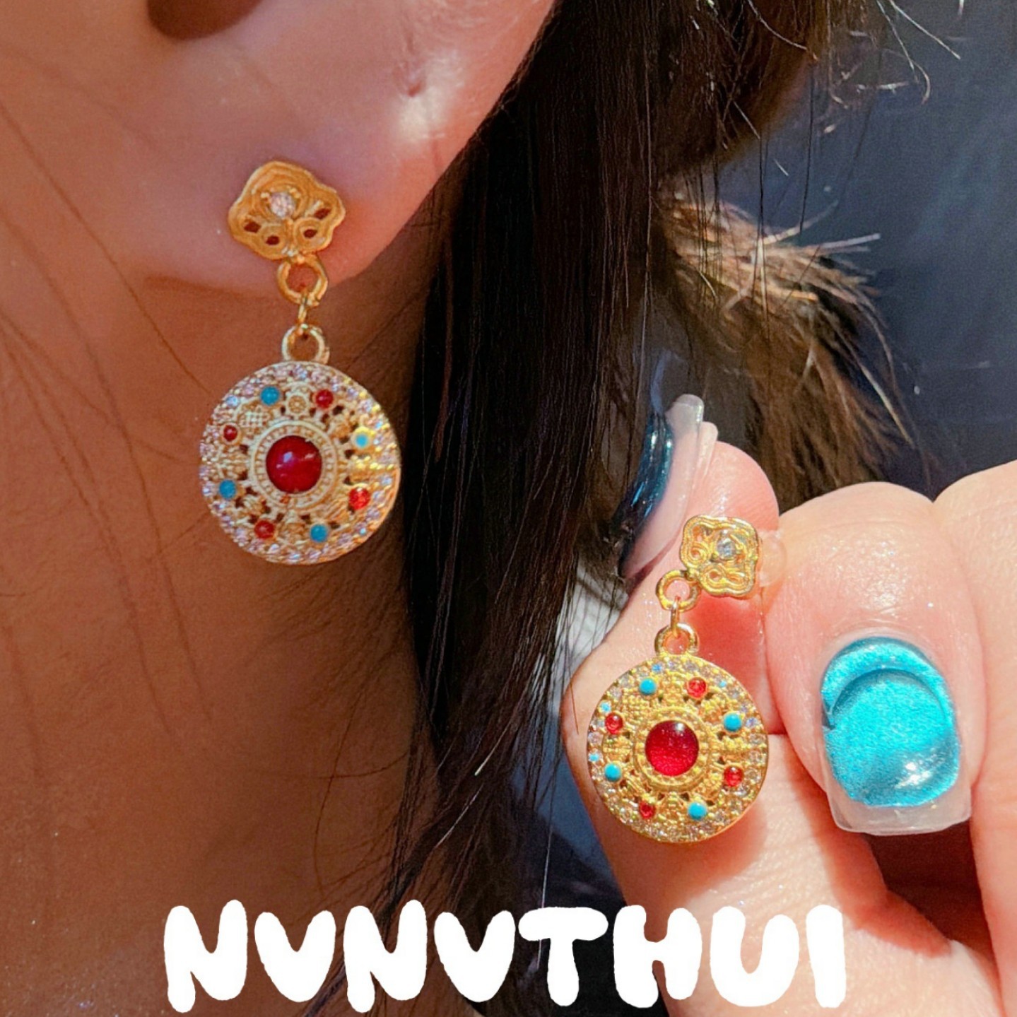 3706nv [eight treasure compass red bead] small earrings ~ no box