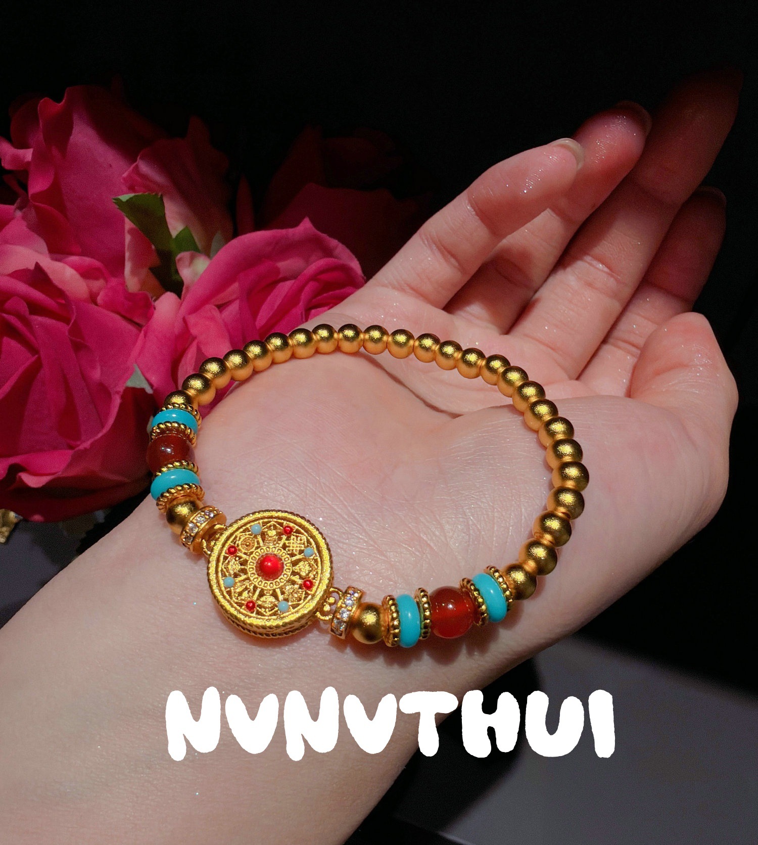 3706nv [wealth and good fortune] eight treasures compass red bead bracelet ~ no box
