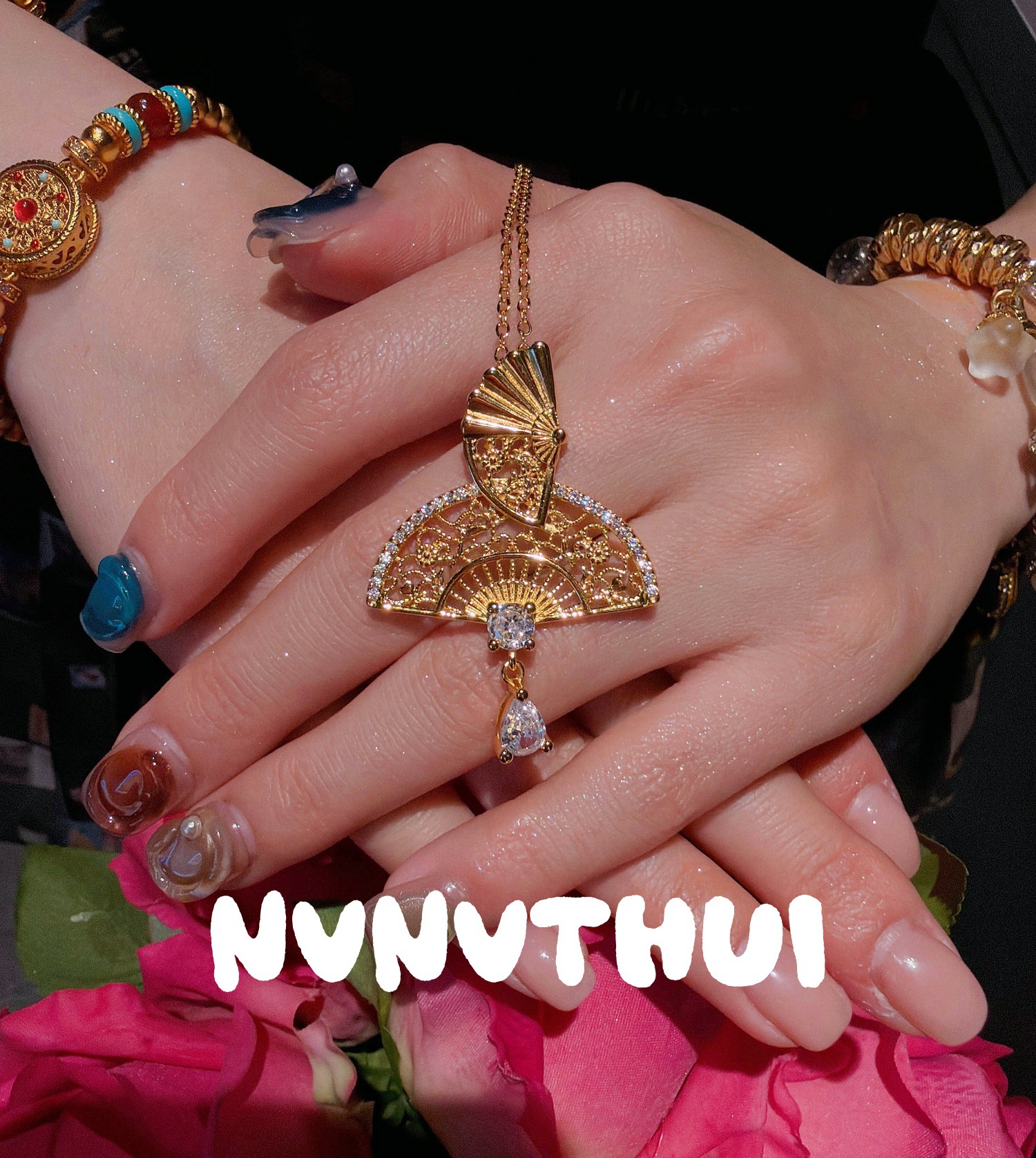 3706nv spot drill [water drop fan] necklace ~ no box