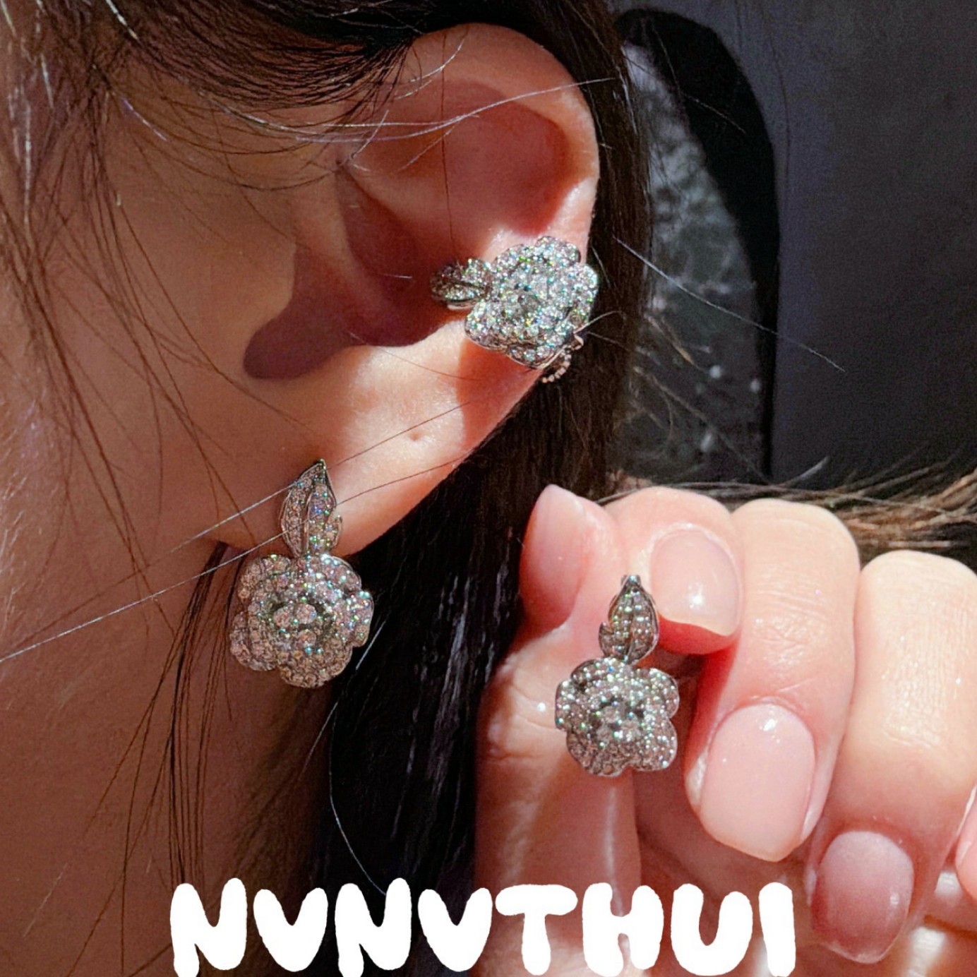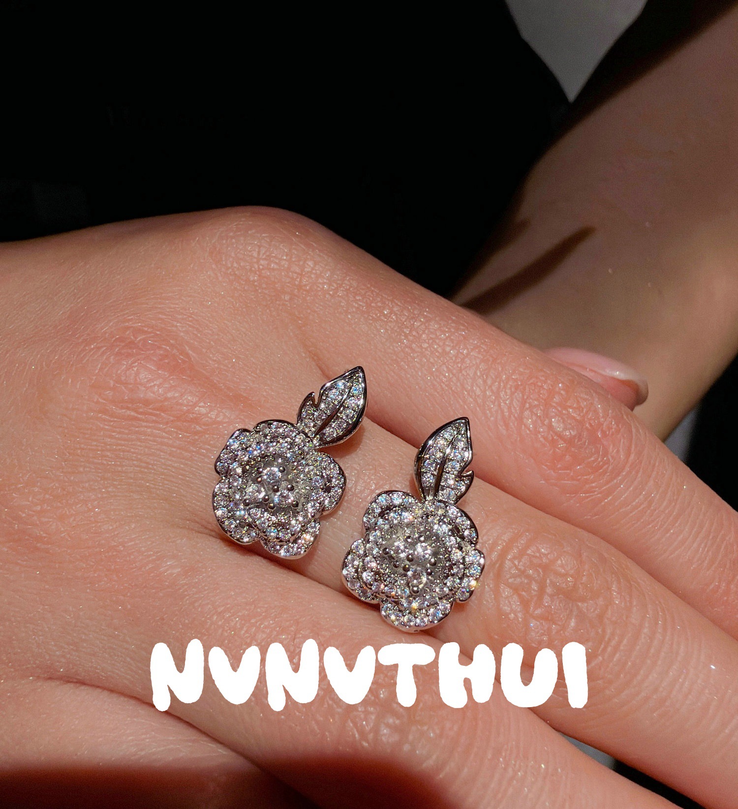 018k camellia leaves ear studs ~ no box