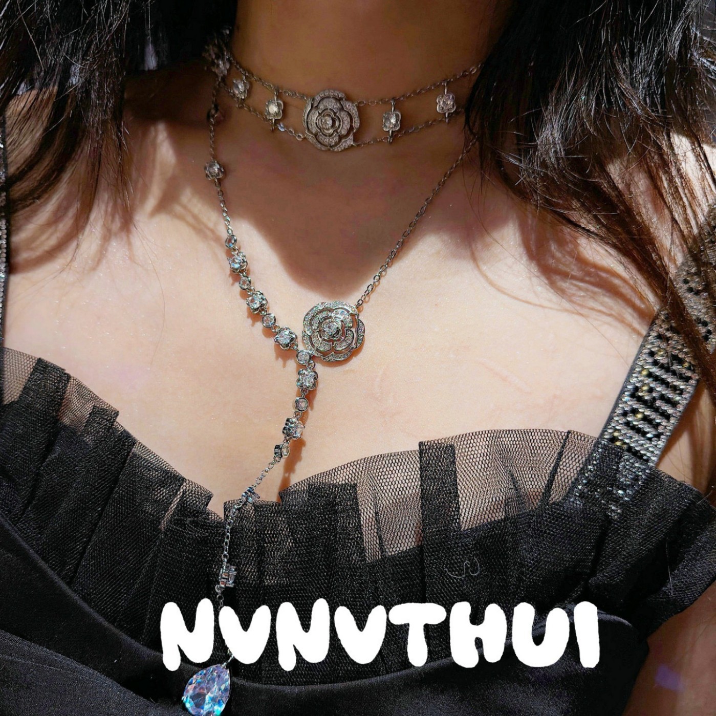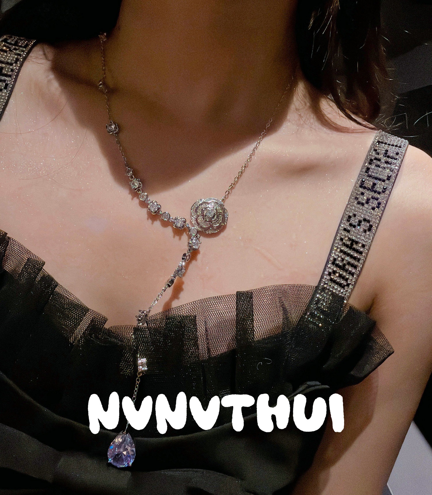 653zz [camellia] large water drop tassel y-shaped necklace-no box
