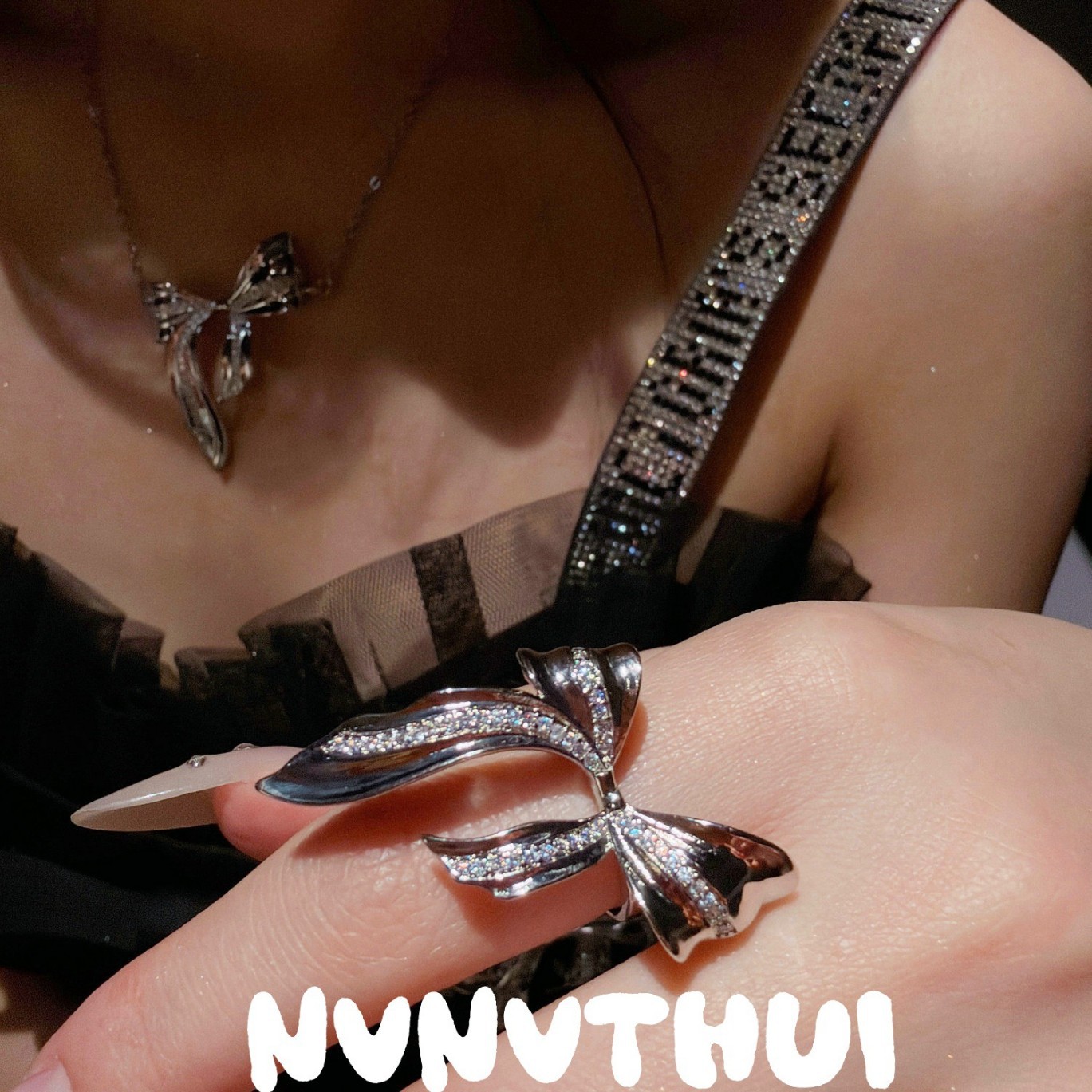 3324yy [meteor ribbon bowknot] open ring ~ no box