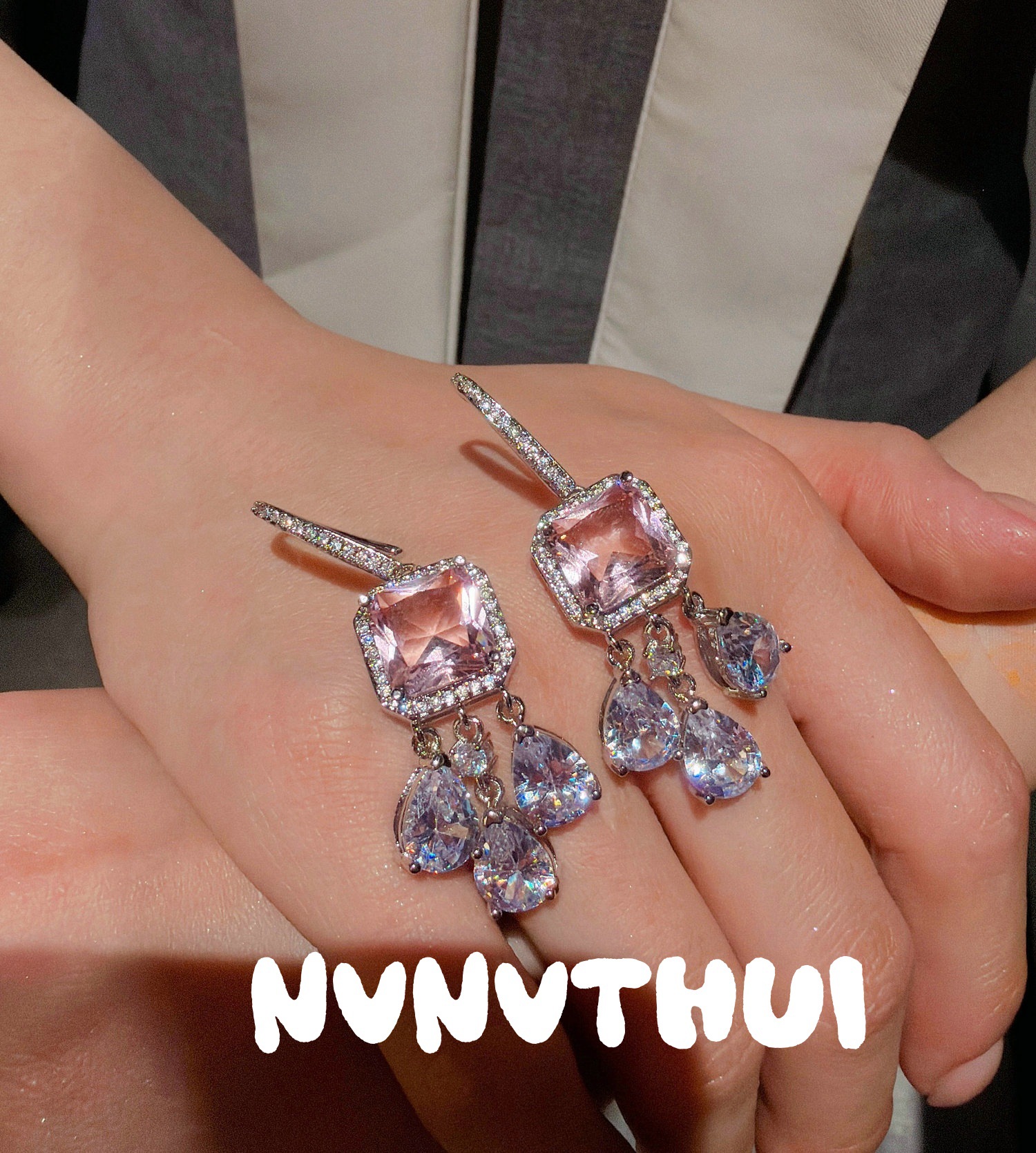 3036kk [pink + water drop] earrings ~ no box