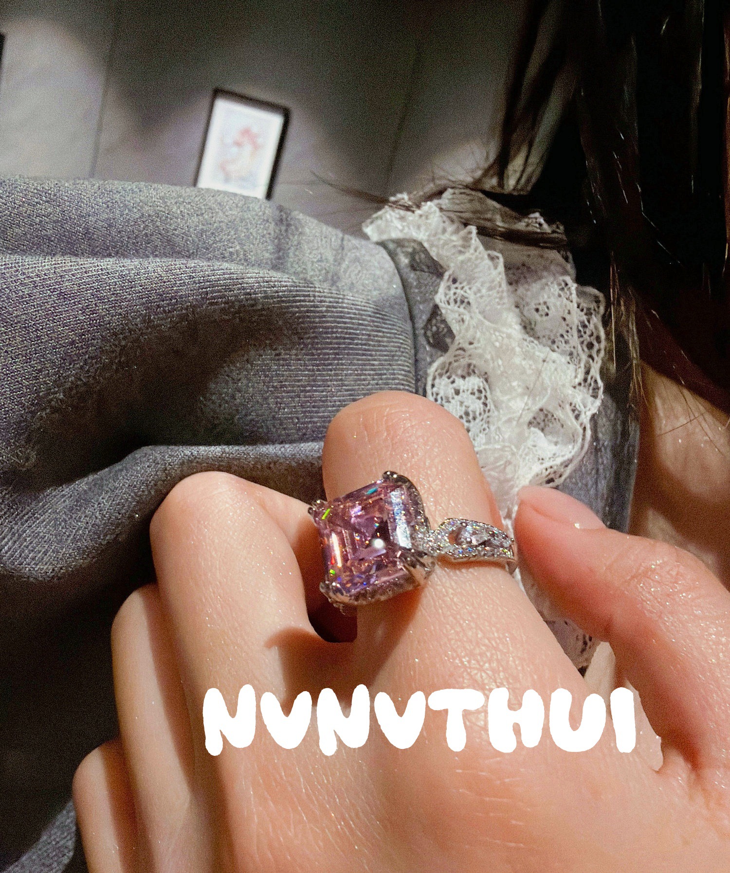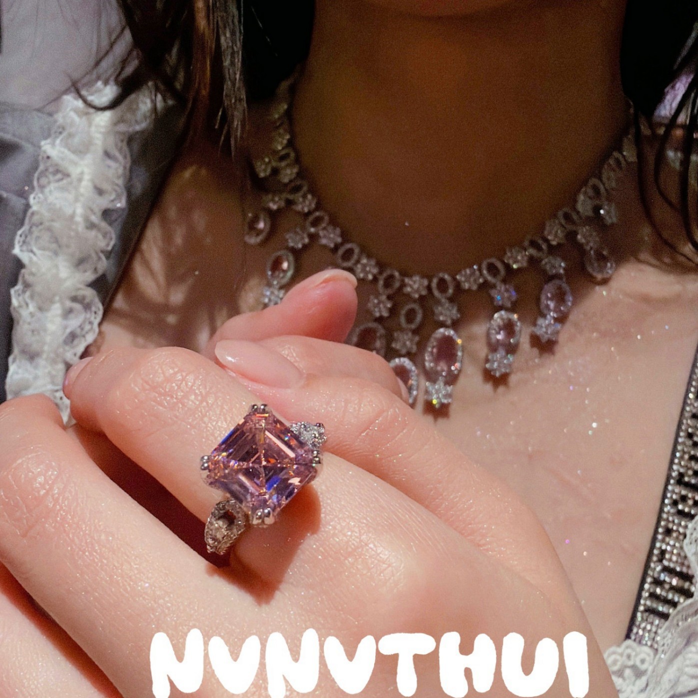 3230g rouge pink fat cubic zirconia open ring ~ snowflake cut is very shiny ~ no box