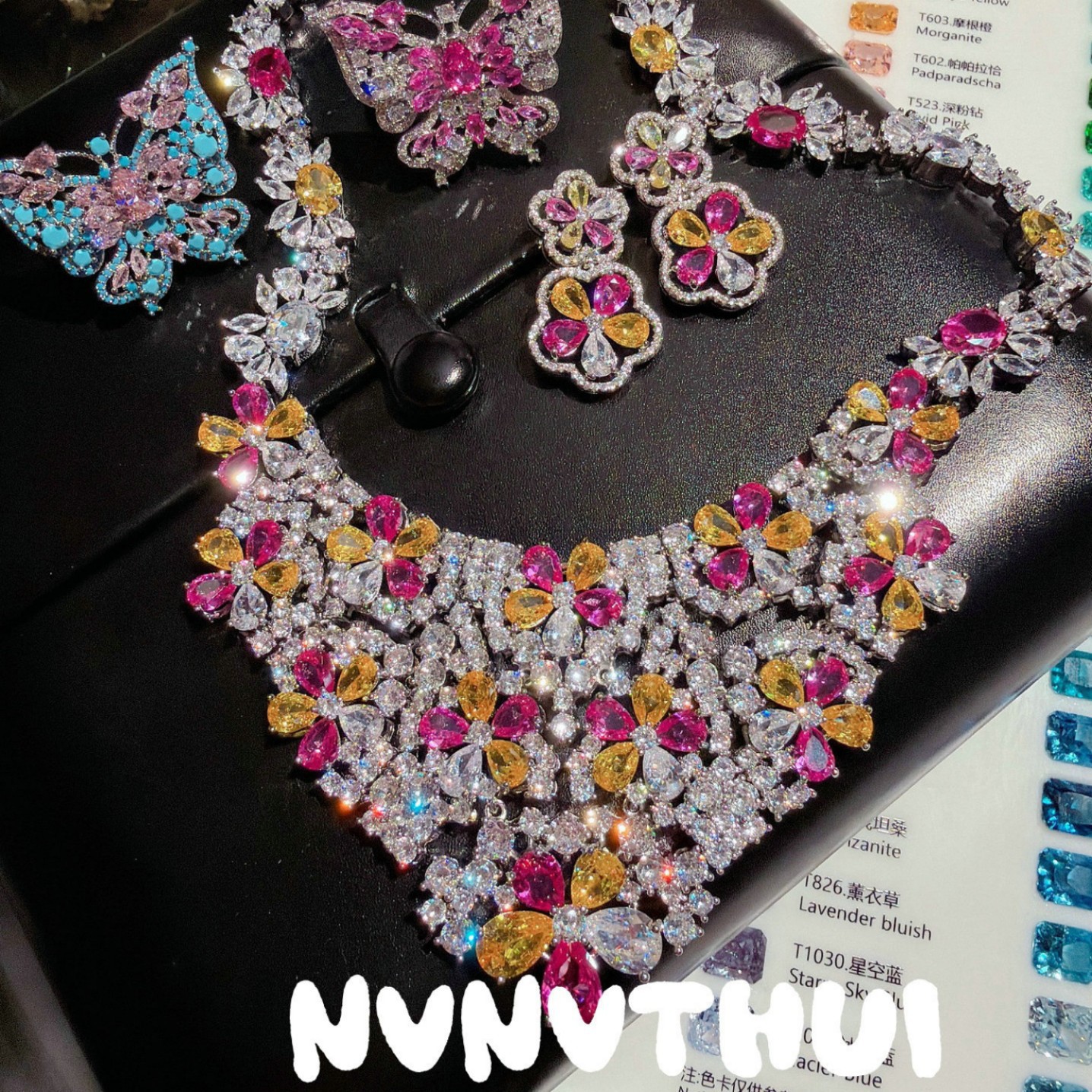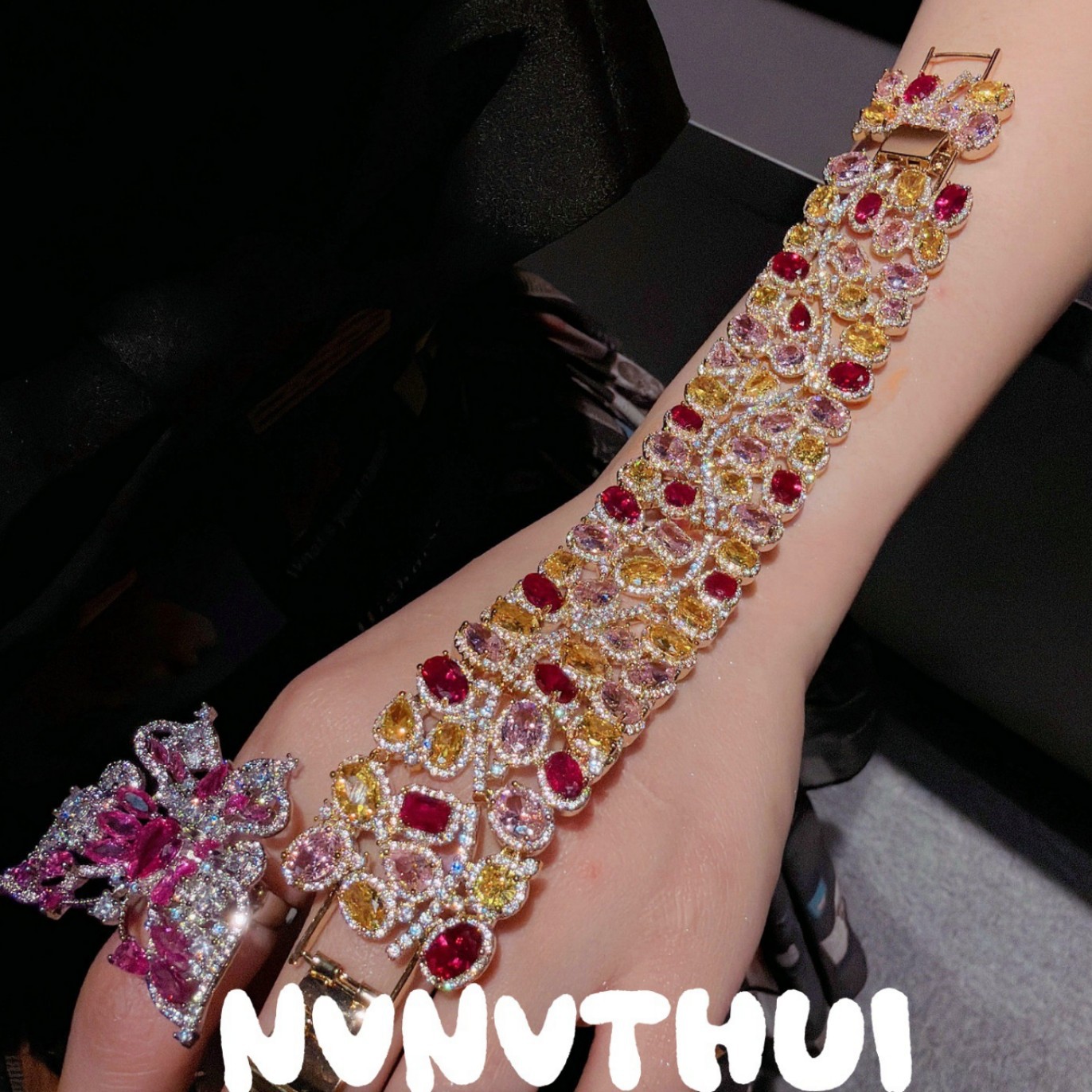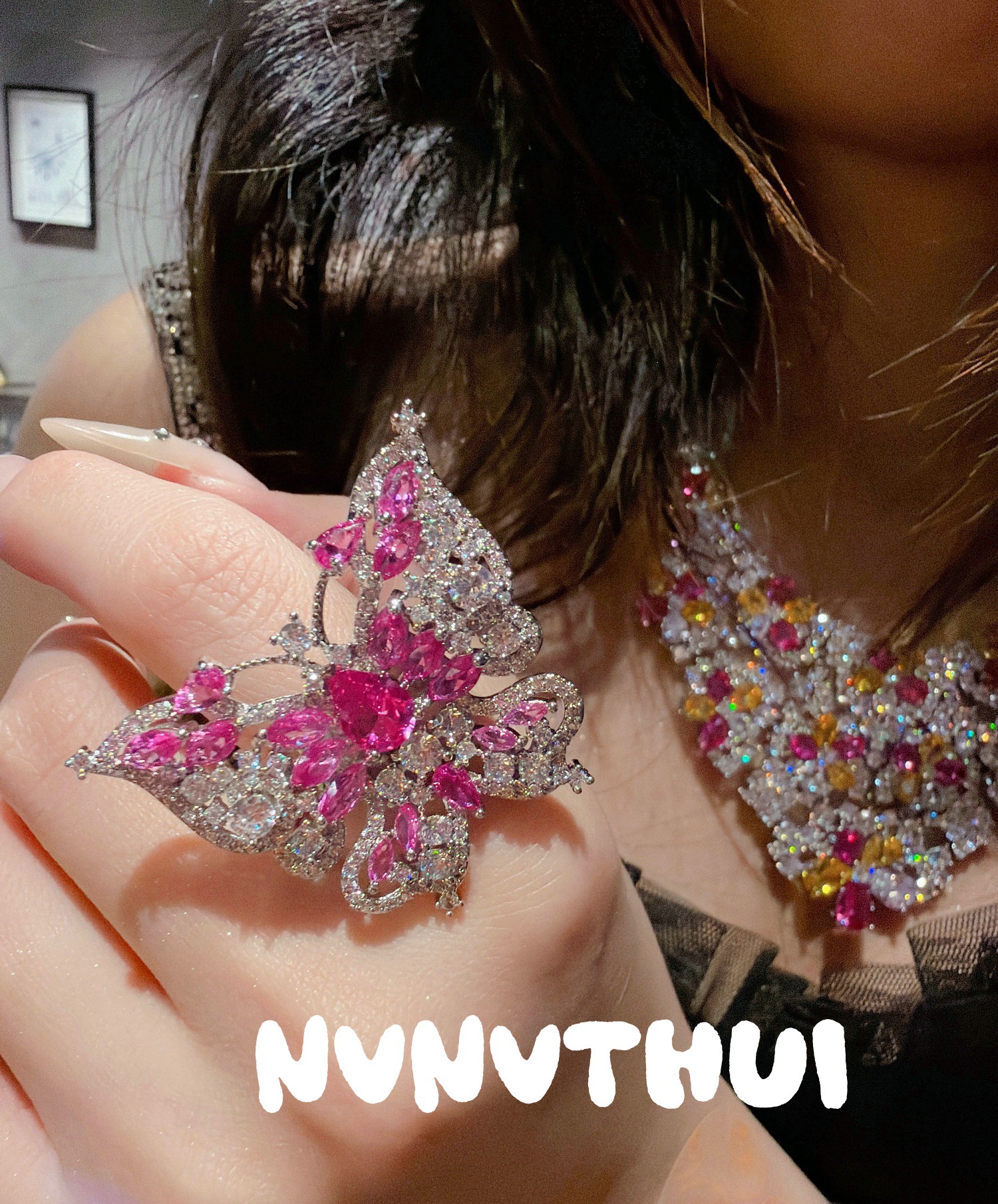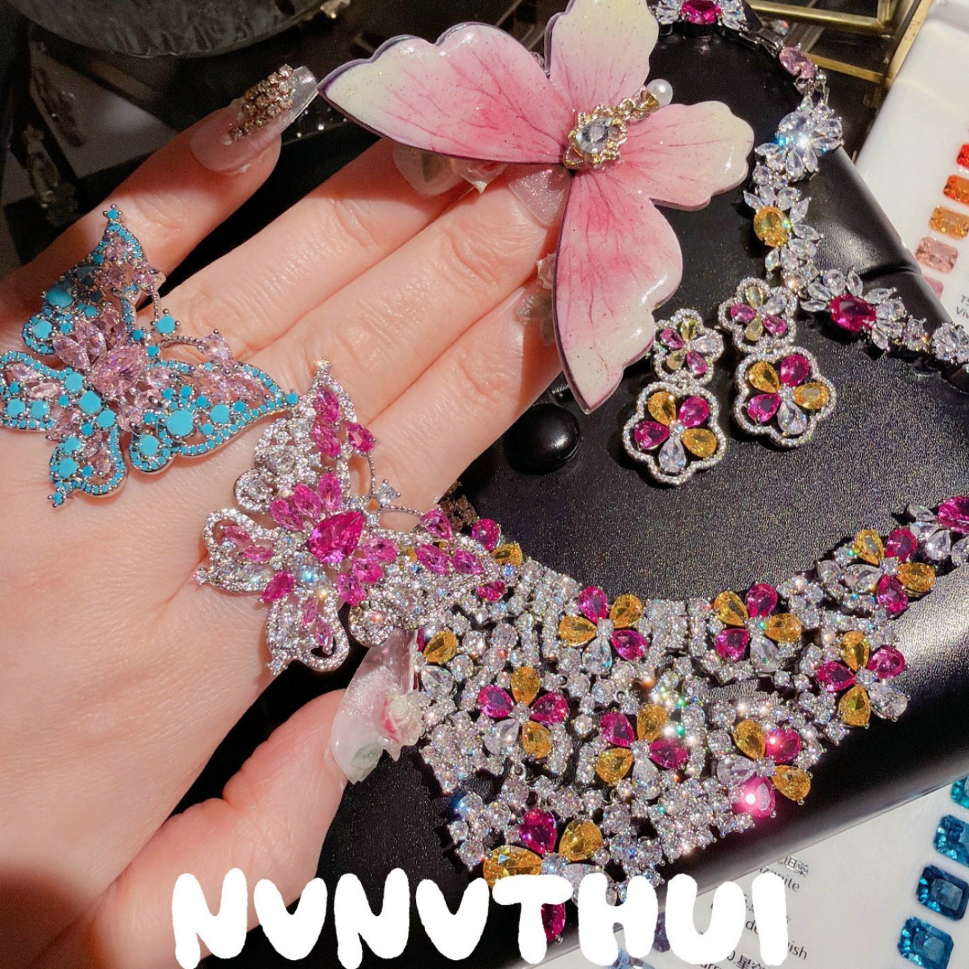3633qin [dark blue pink diamond] butterfly high fixed ring ~ no box