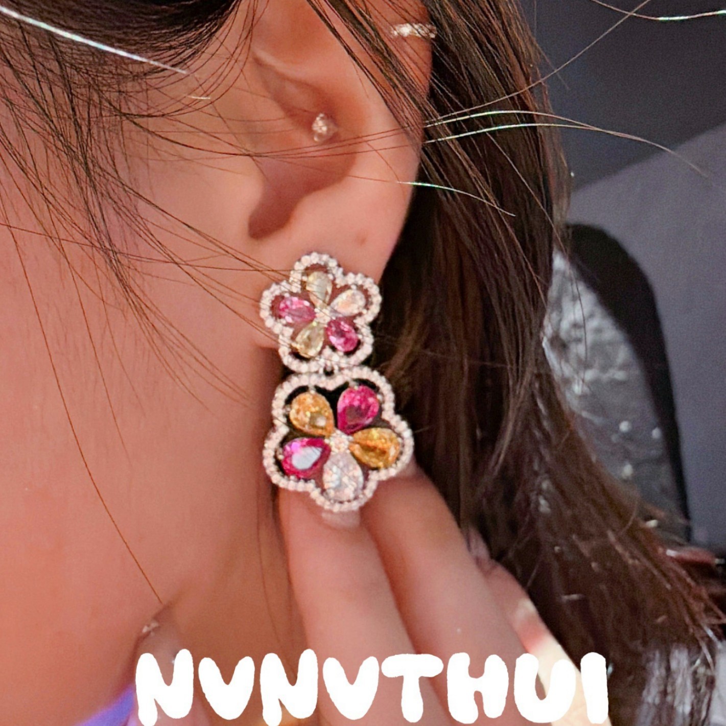 3633qin [party carmine flowers] earrings ~ no box