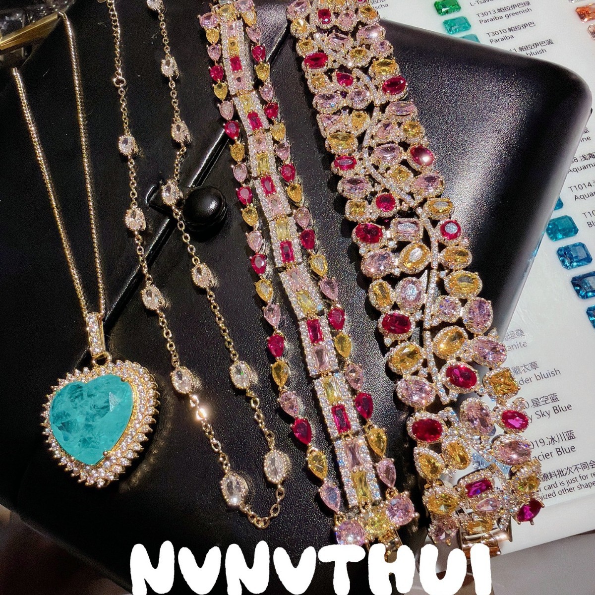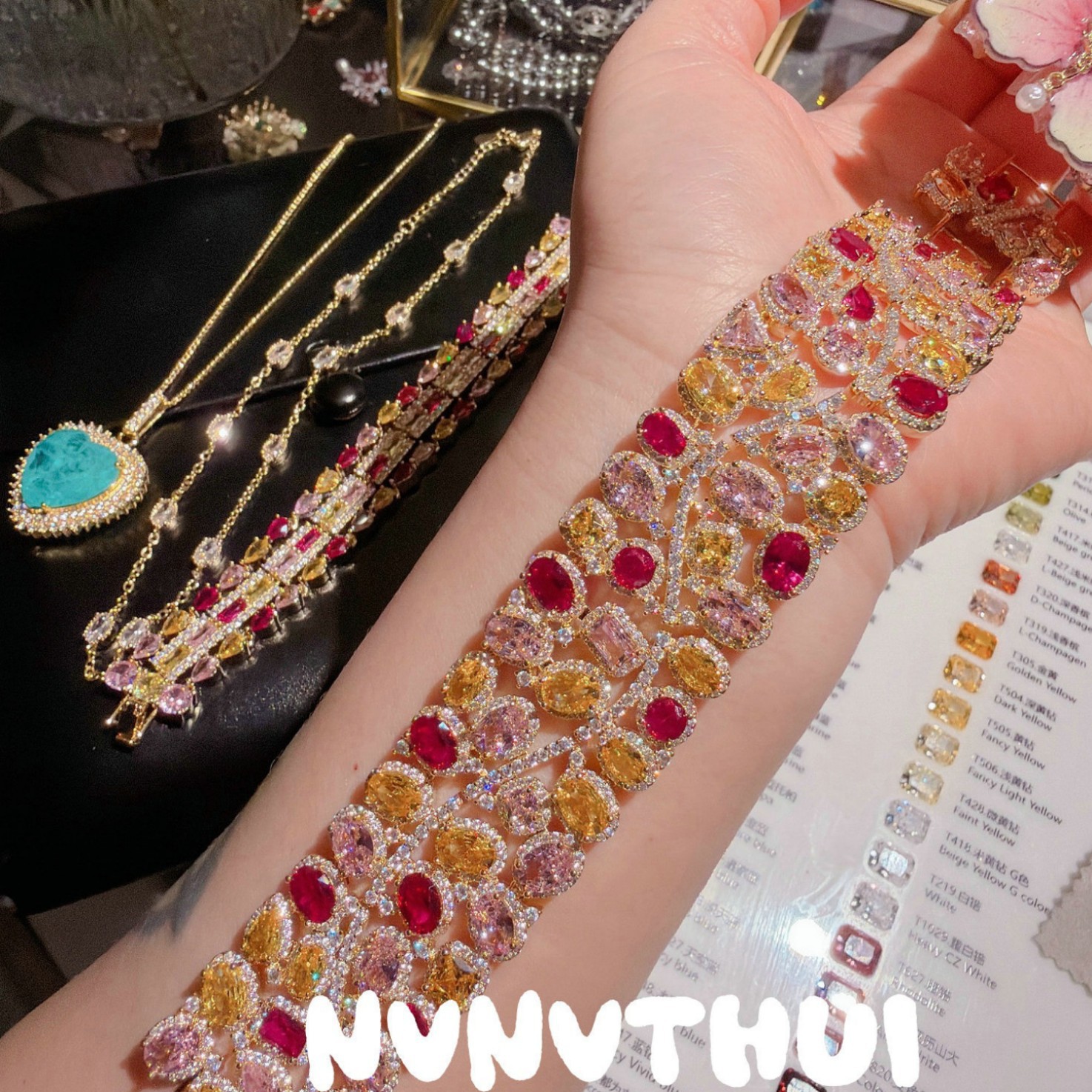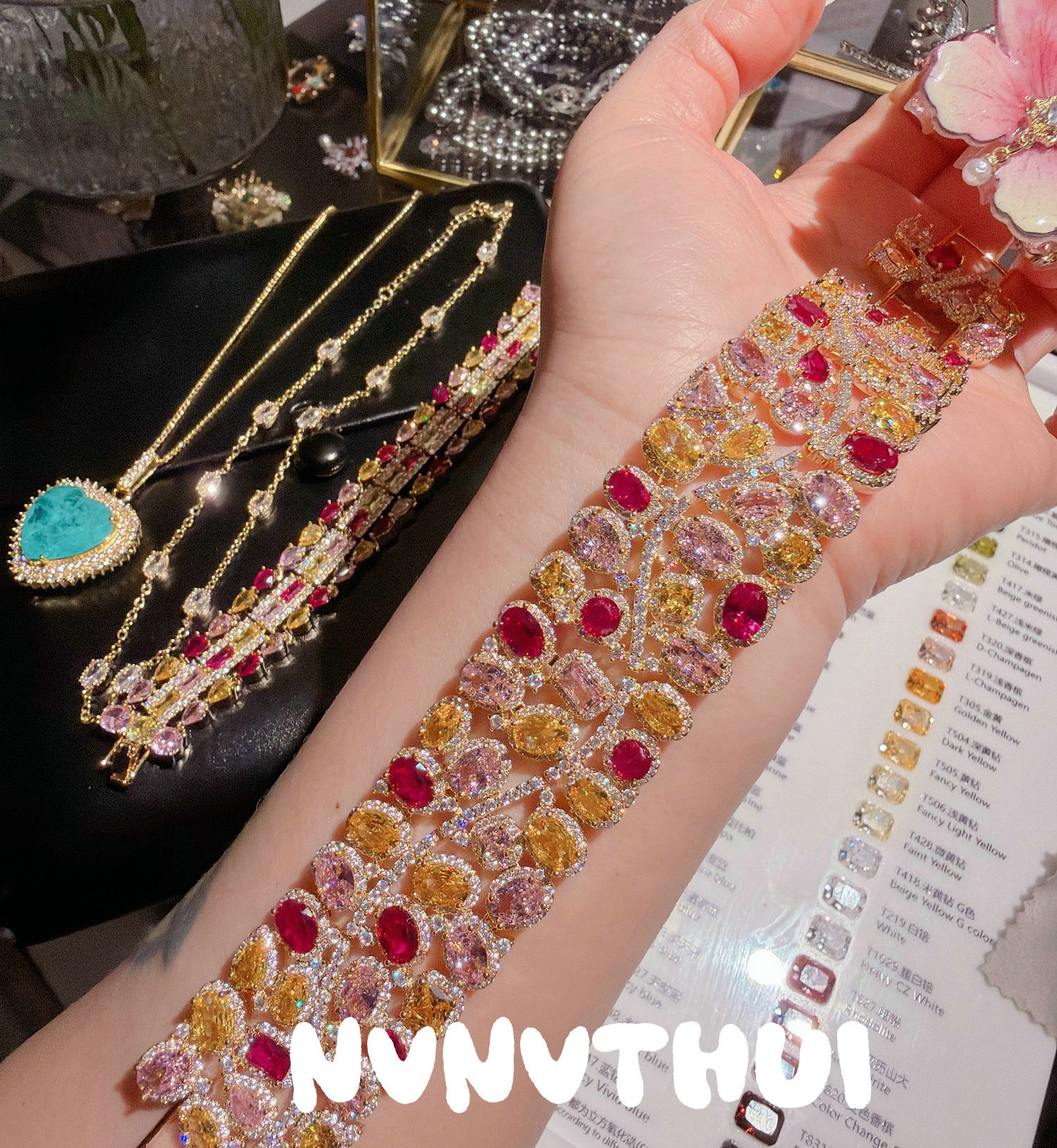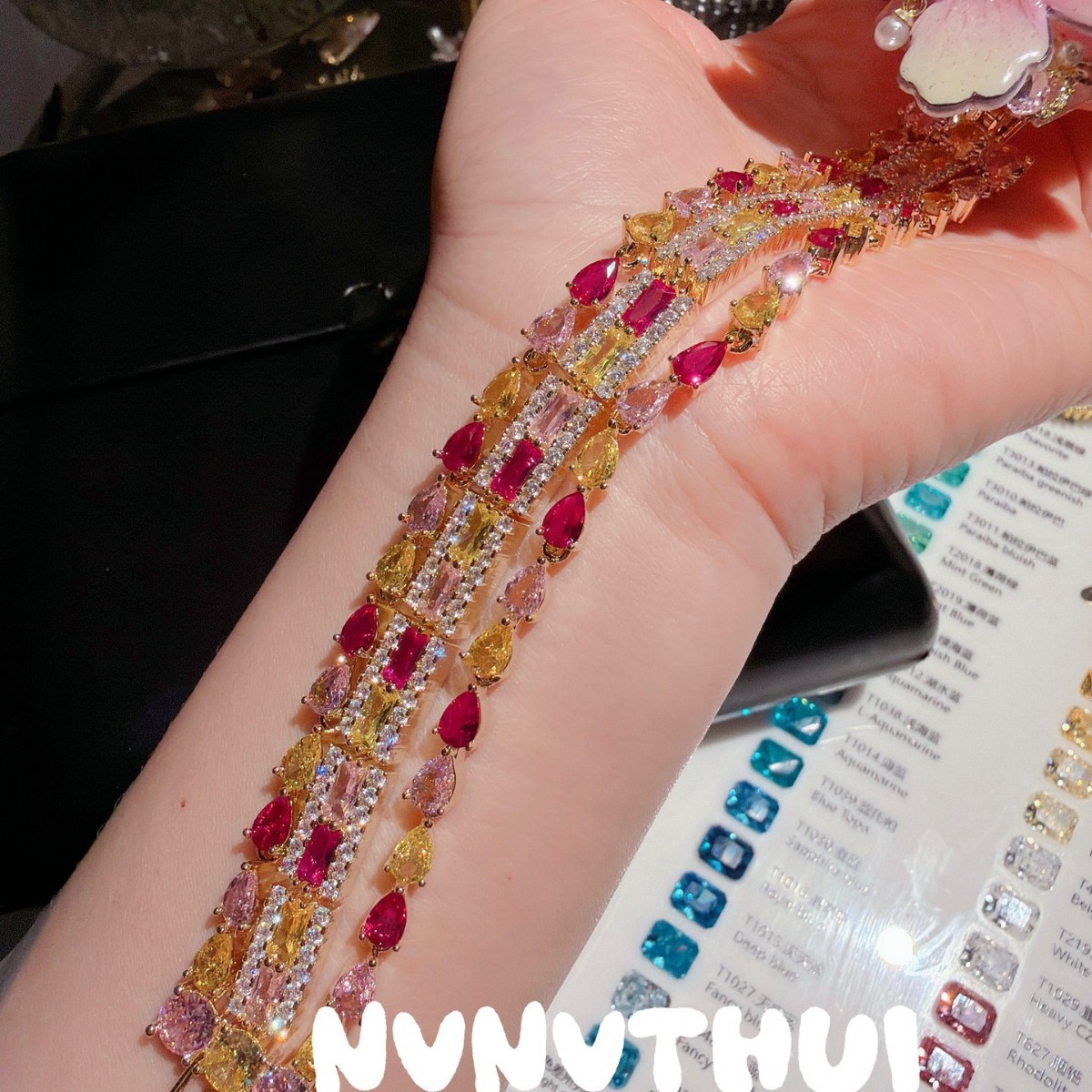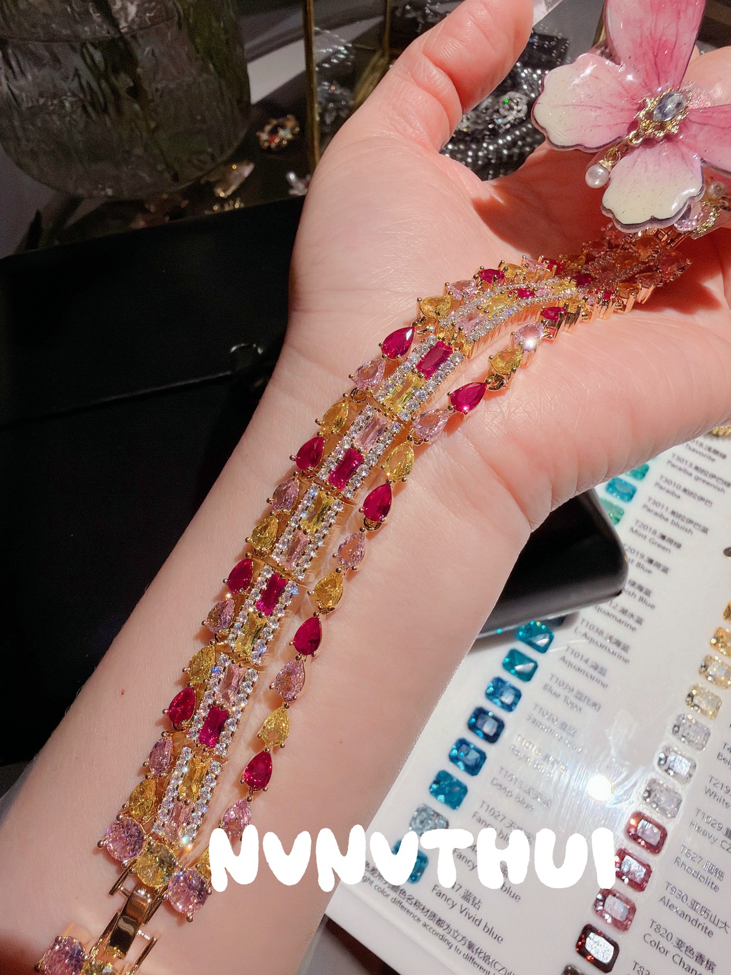 3635qin [piebald amber with shape] colorful crystals wide bracelet ~ no box