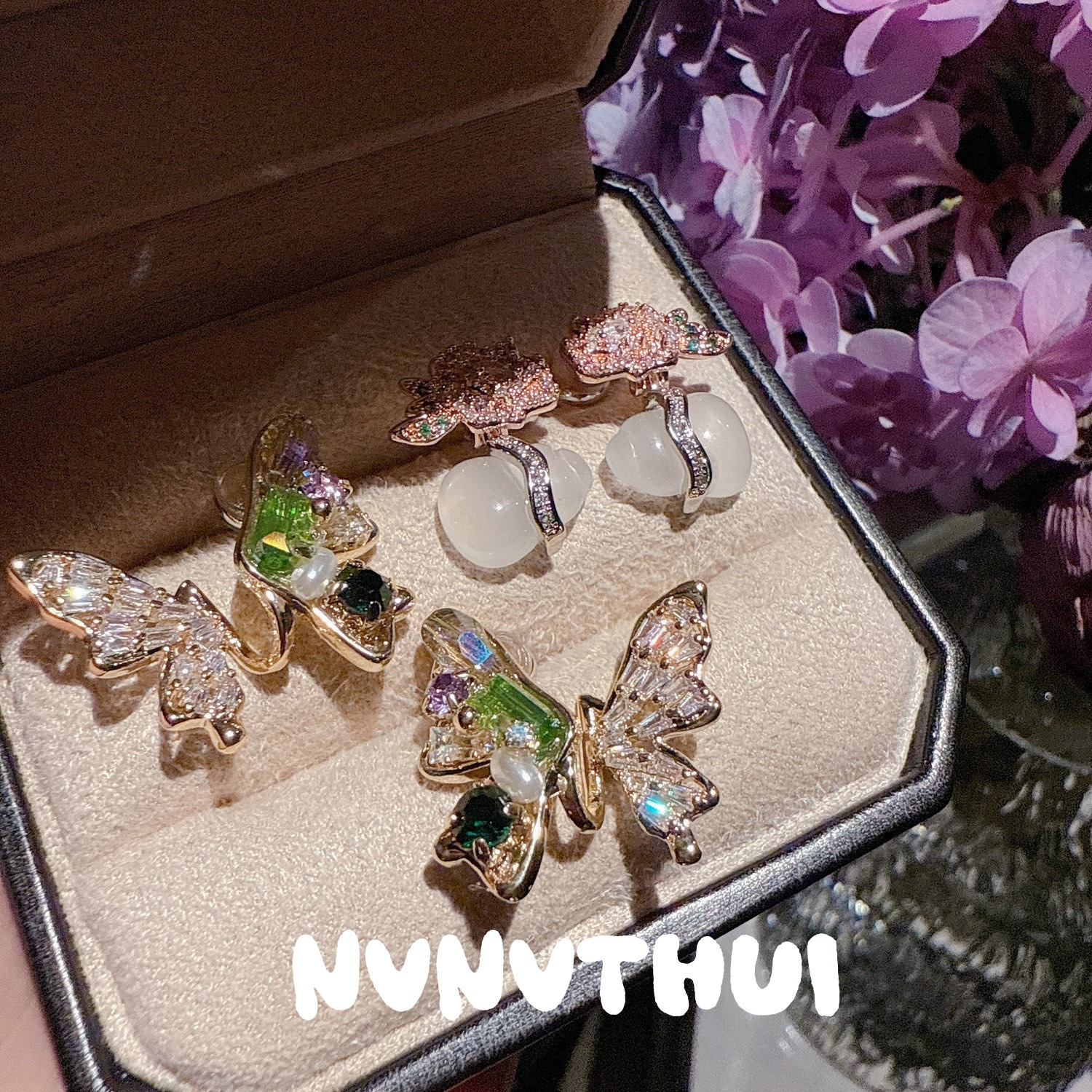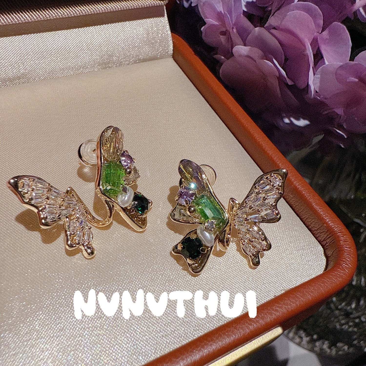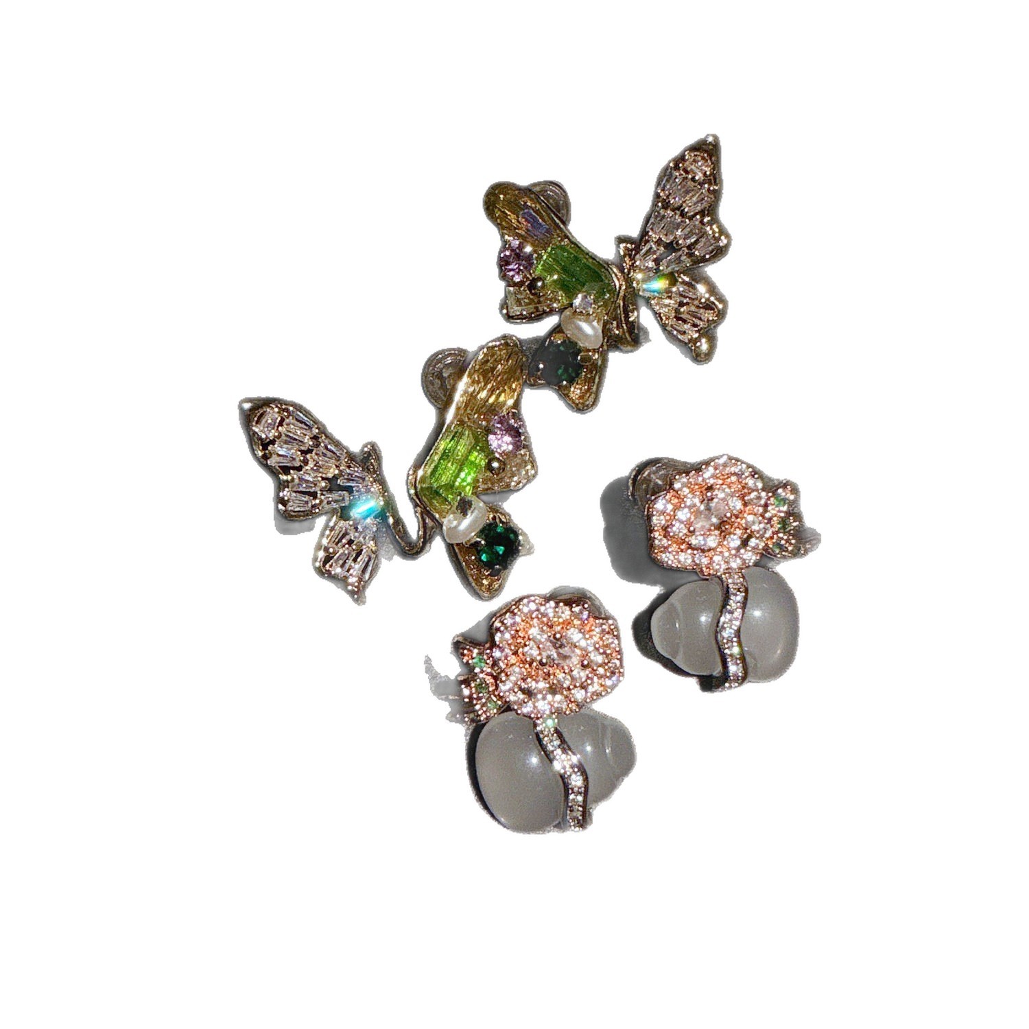930qip [rainbow butterfly] rhinestone earrings ~ no box