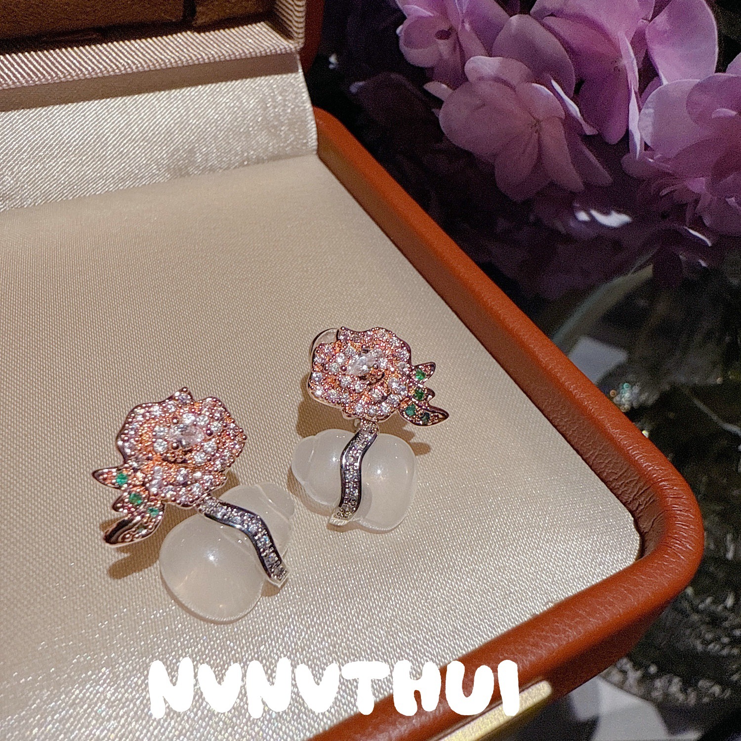 930qip [fei zi xiao gourd] rose earrings ~ no box