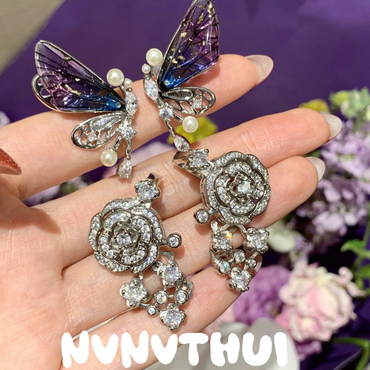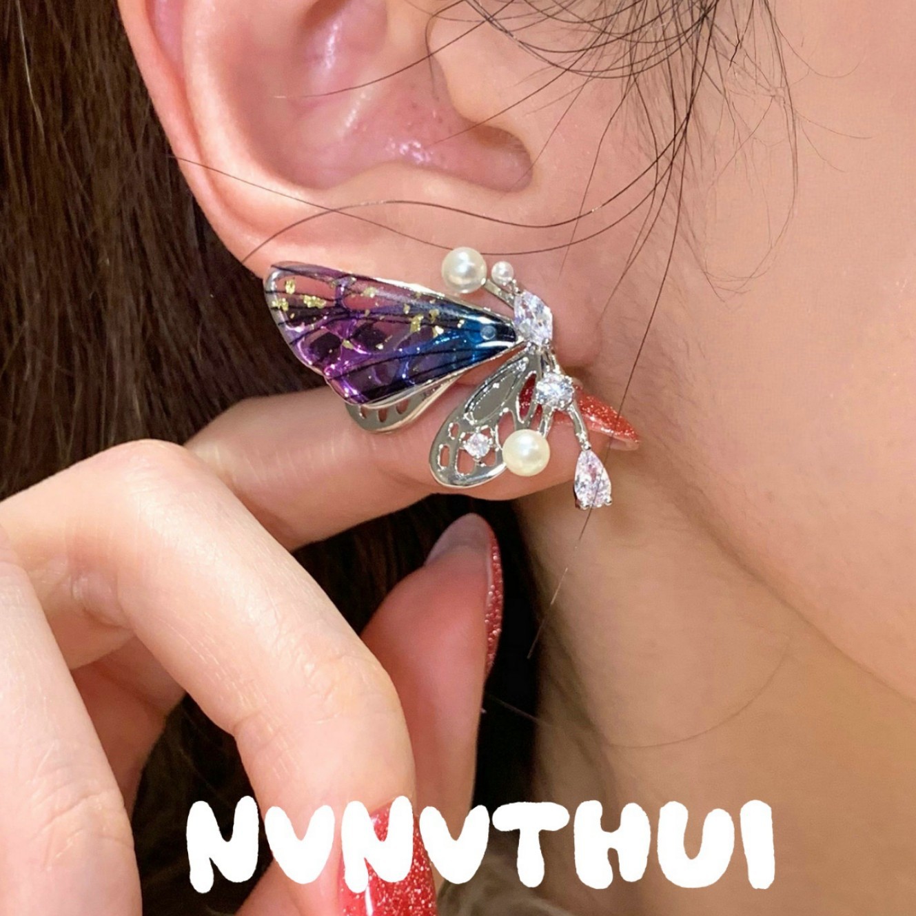 3611qip [gradient purple color] colorful butterfly earrings ~ no box