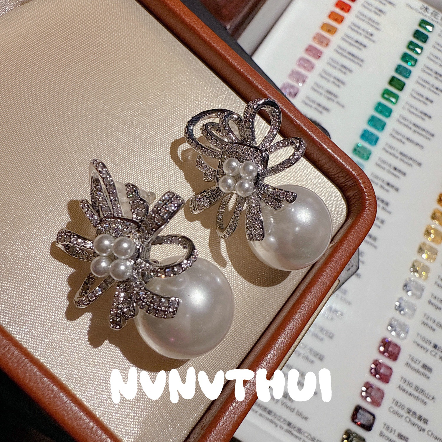 3611qip [bow] beaded earrings ~ no box