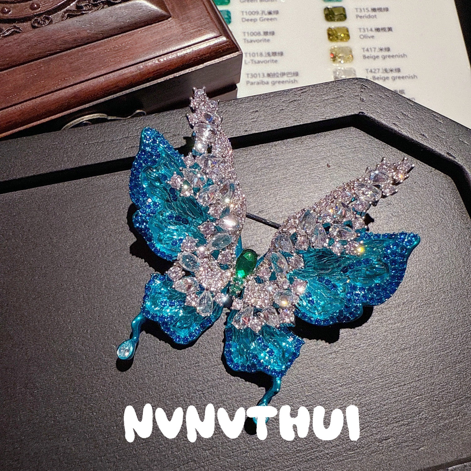 3609xxz [sea blue green water drops] butterfly brooch ~ no box
