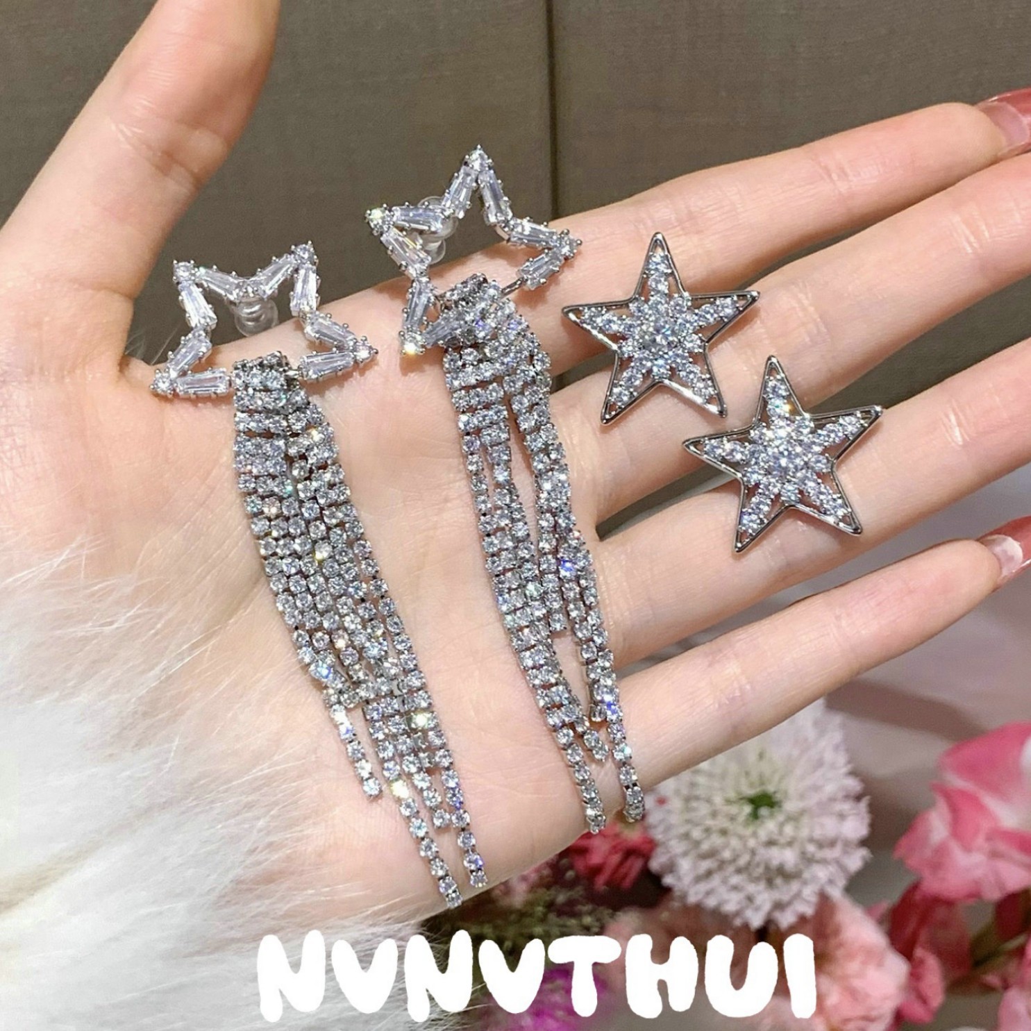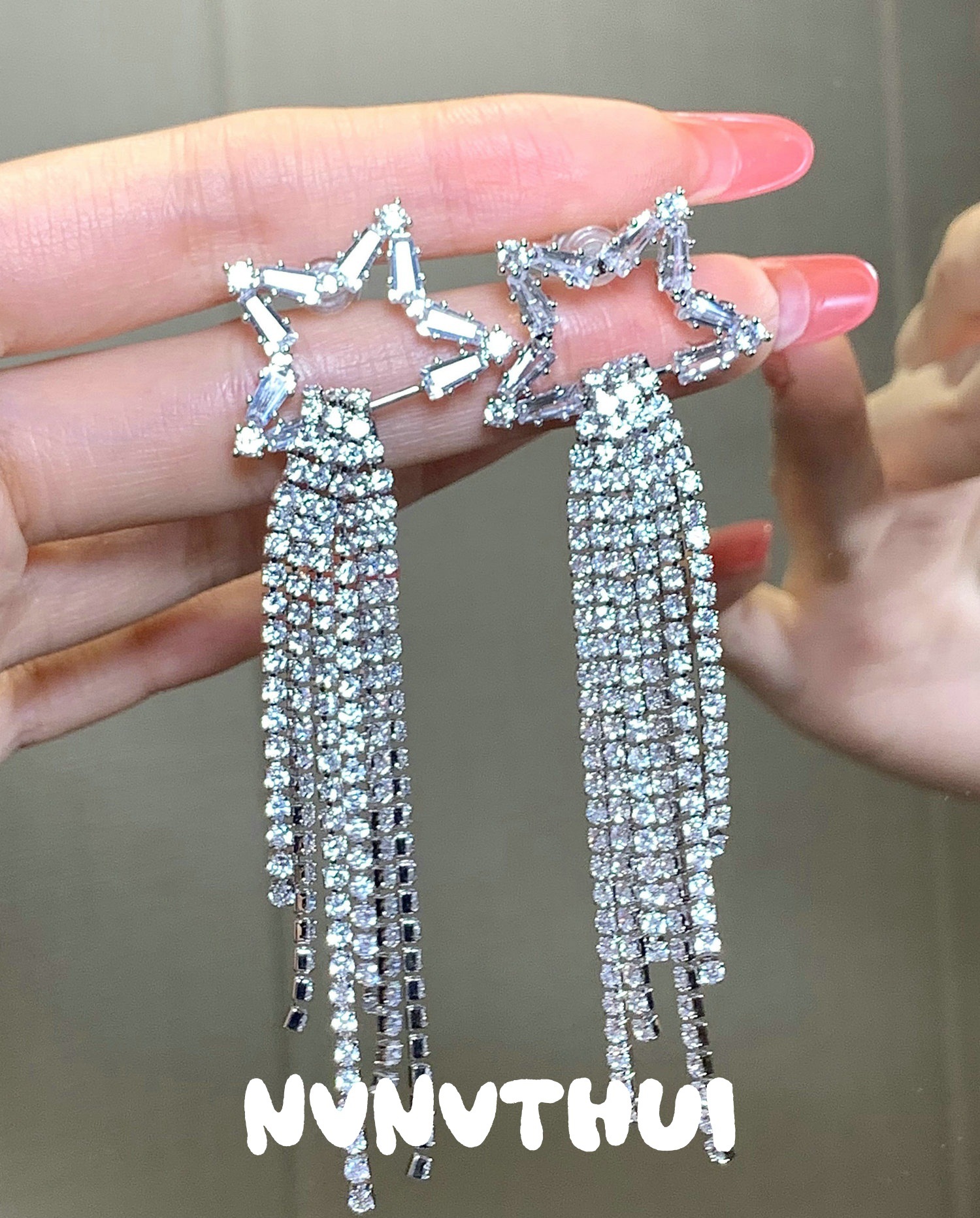3604qip [star hollow] tassel dangle earrings ~ no box