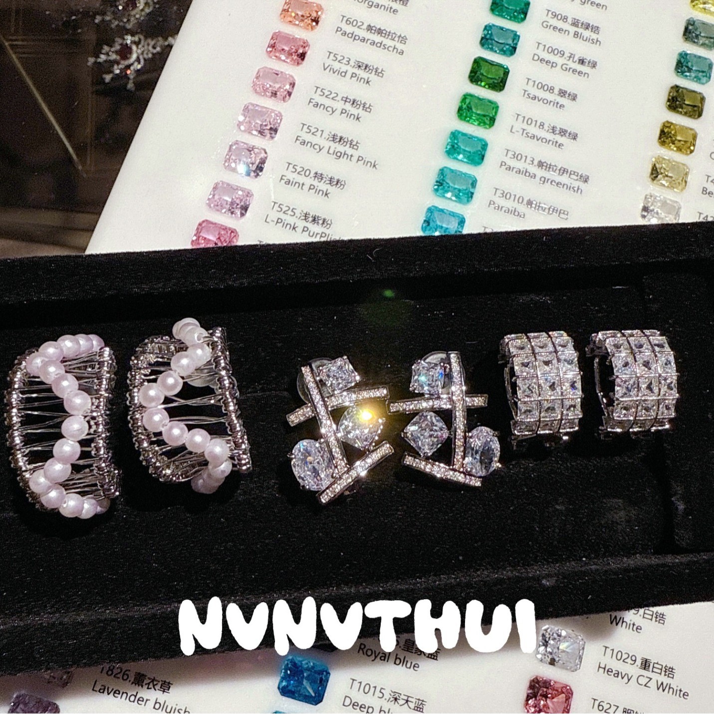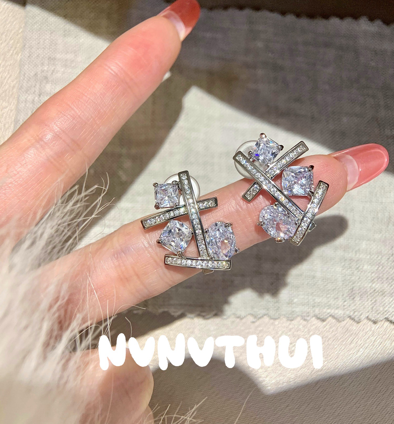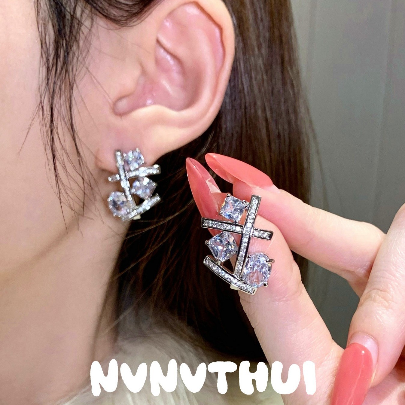 3572qip [irregular lines rhinestone] earrings ~ no box