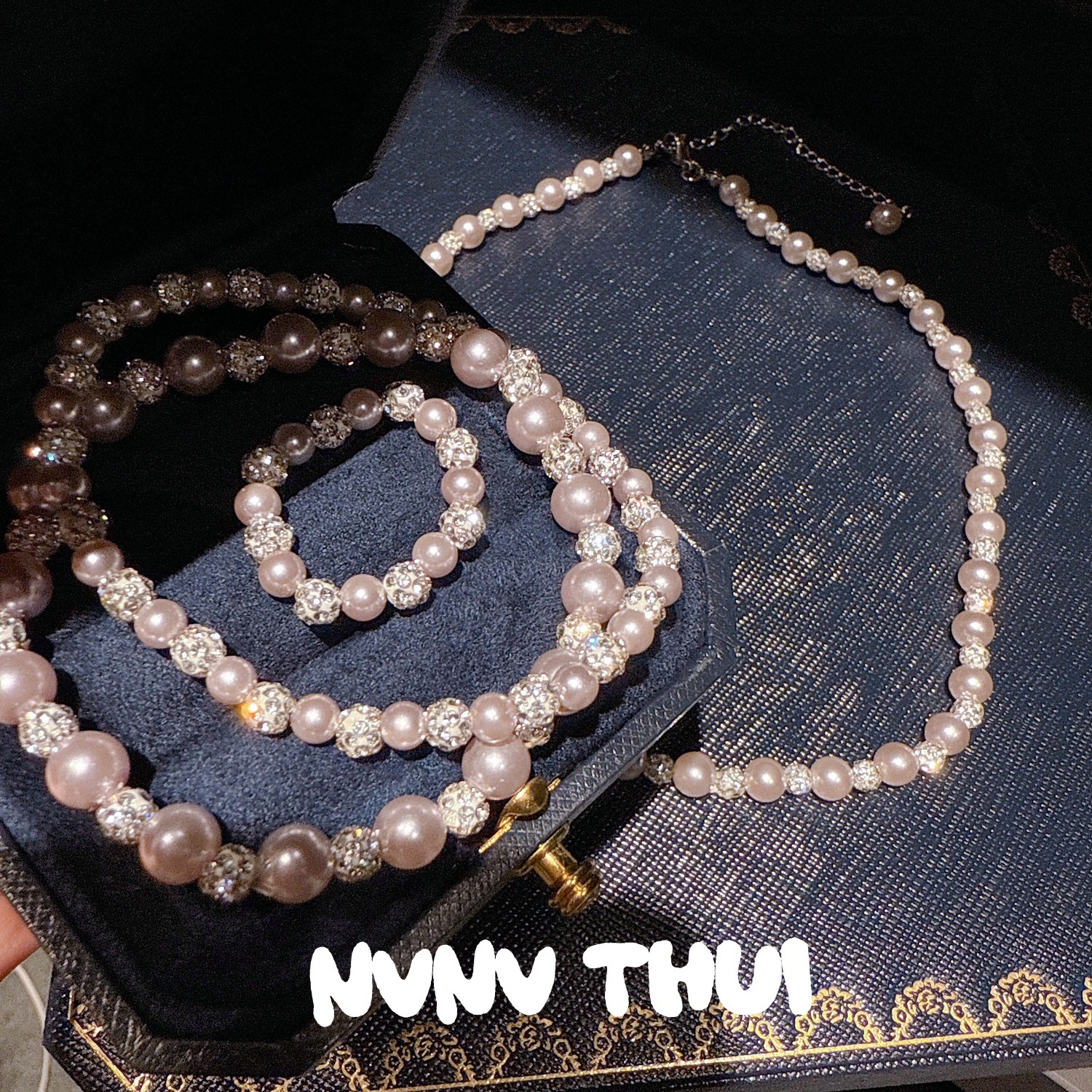 3518xiq [starry cloud raindrops] light gray beaded necklace – no box