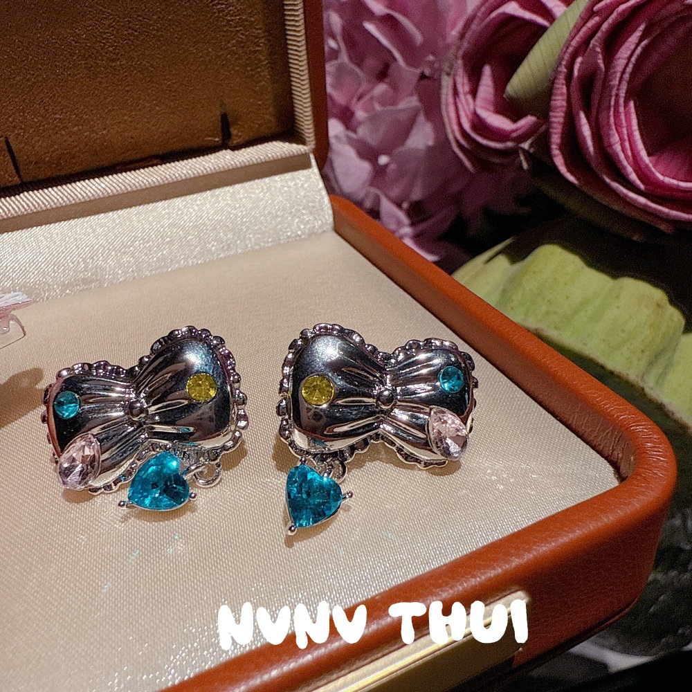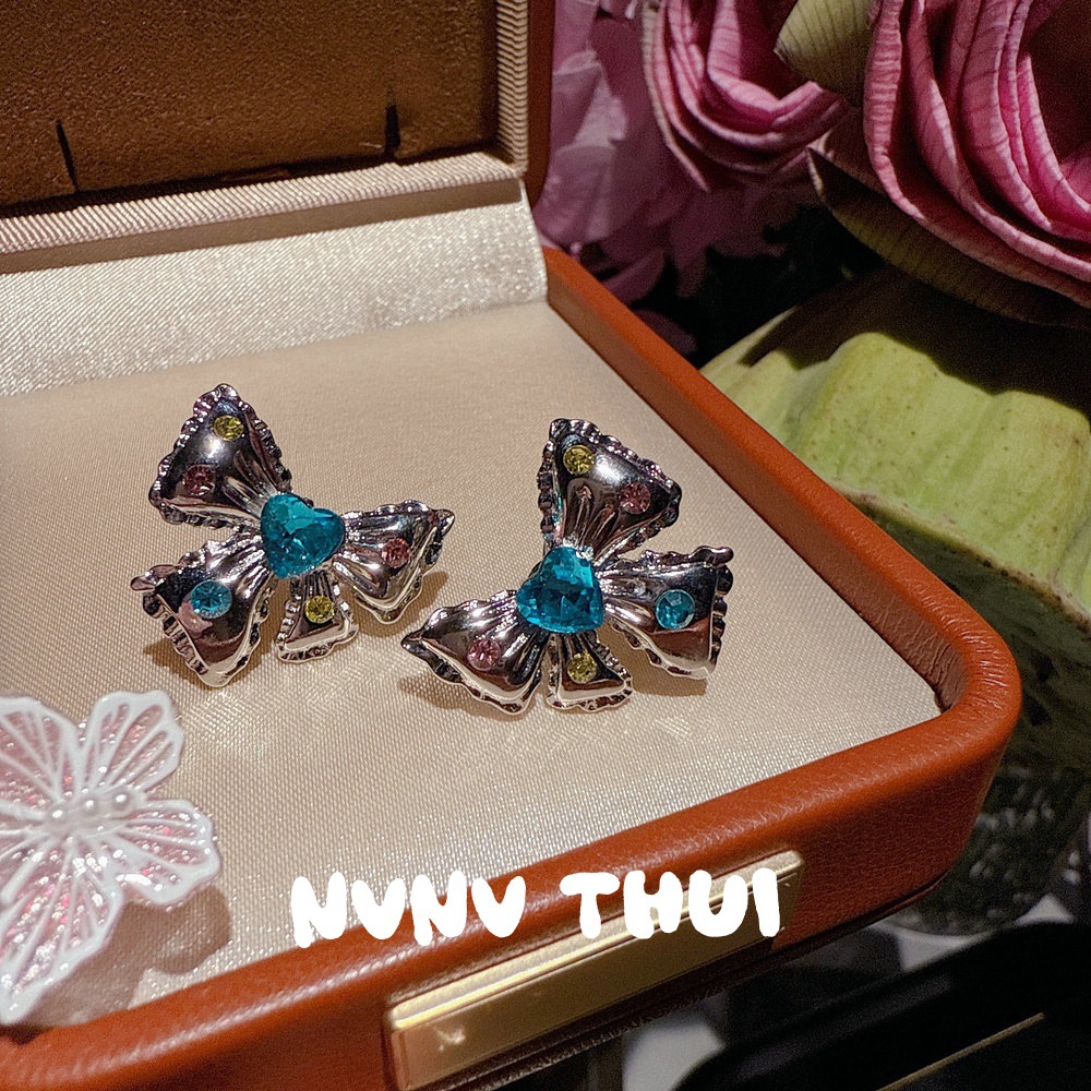 2074y flat bow blue love heart earrings ~ no box