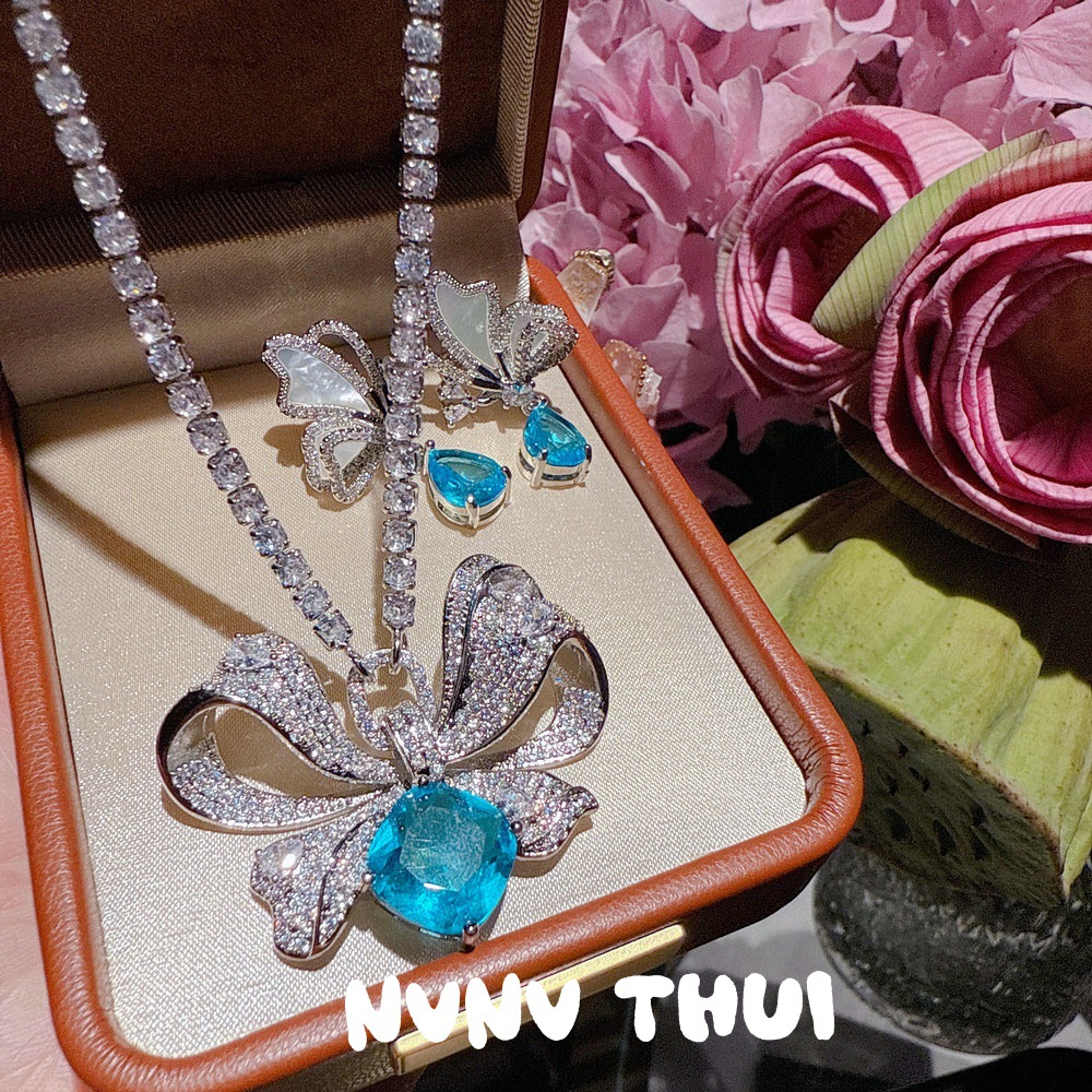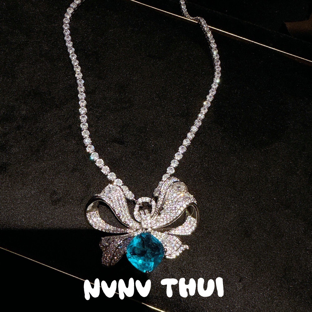 2095k victoria bow blue zircon necklace – no box