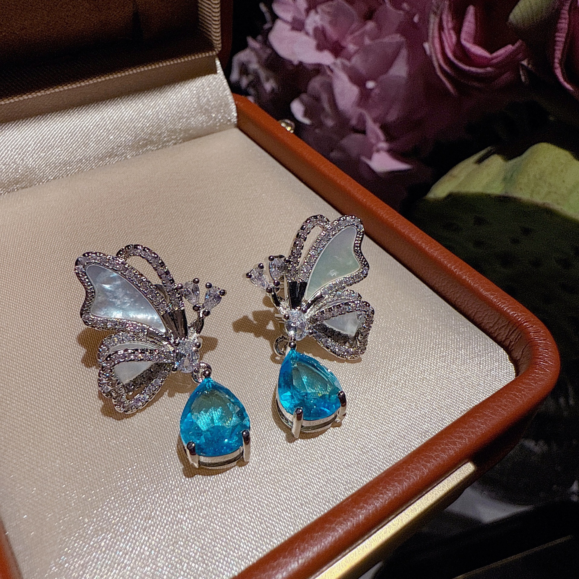 2081z green-blue zircon fritillary butterfly earrings ~ no box