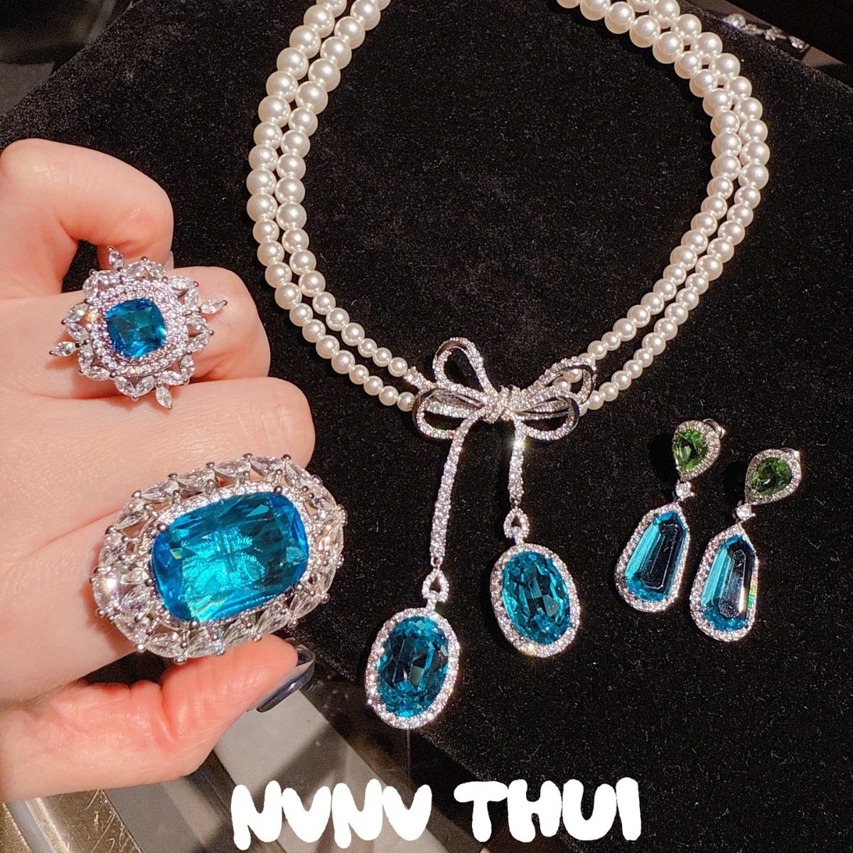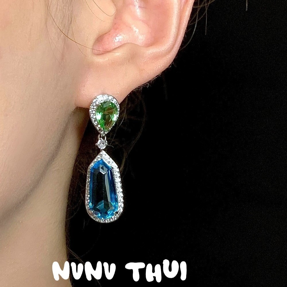 3264nv nieya mint green water drop aquamarine trapezoid earrings ~ no box