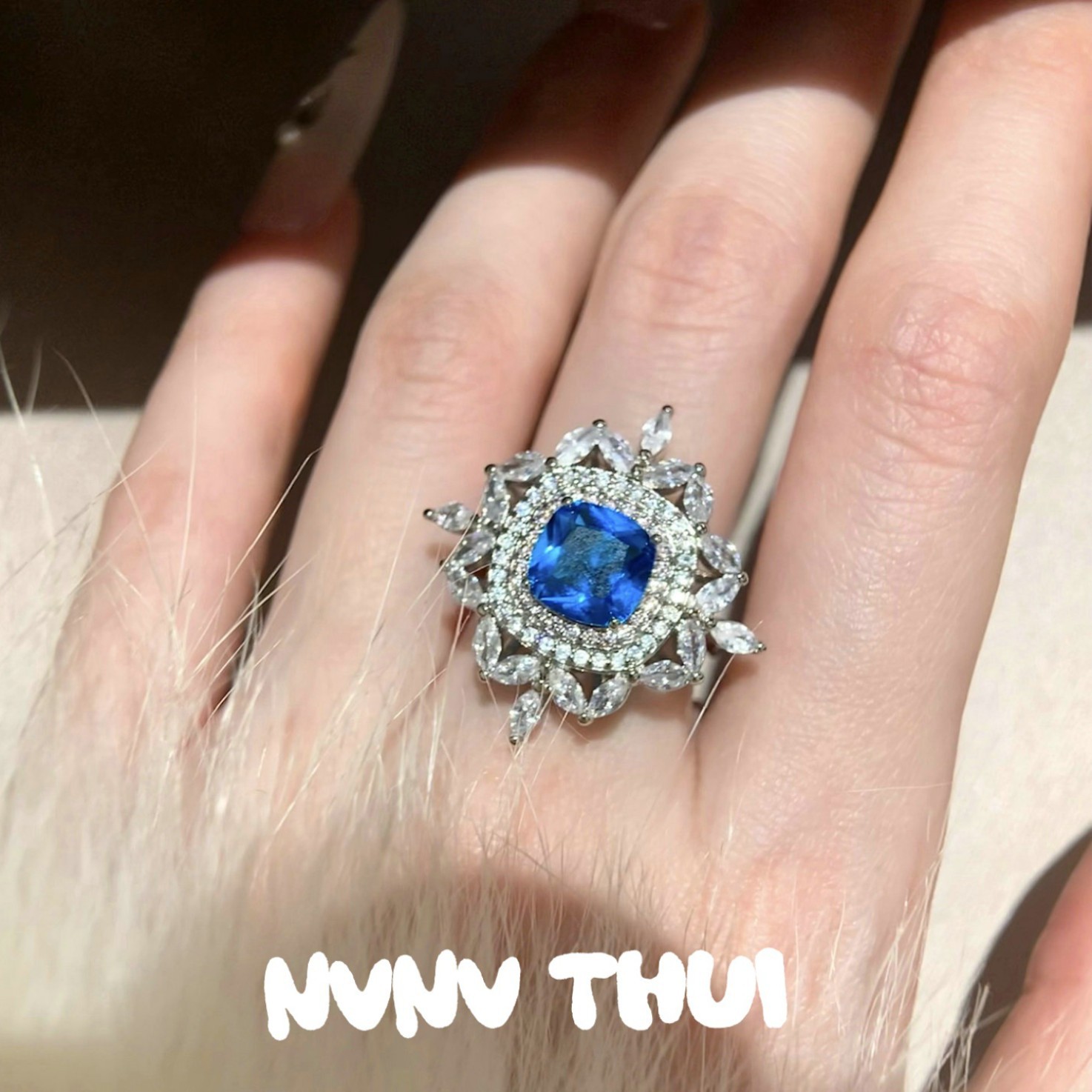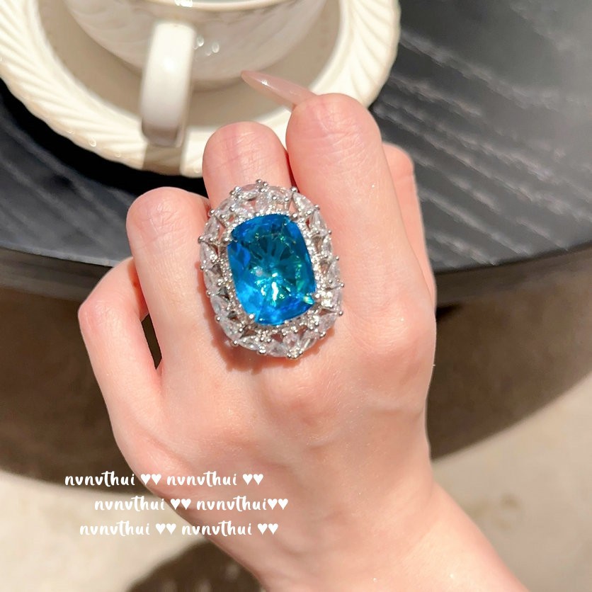 441gz green-blue large carat zircon open ring ~ no box