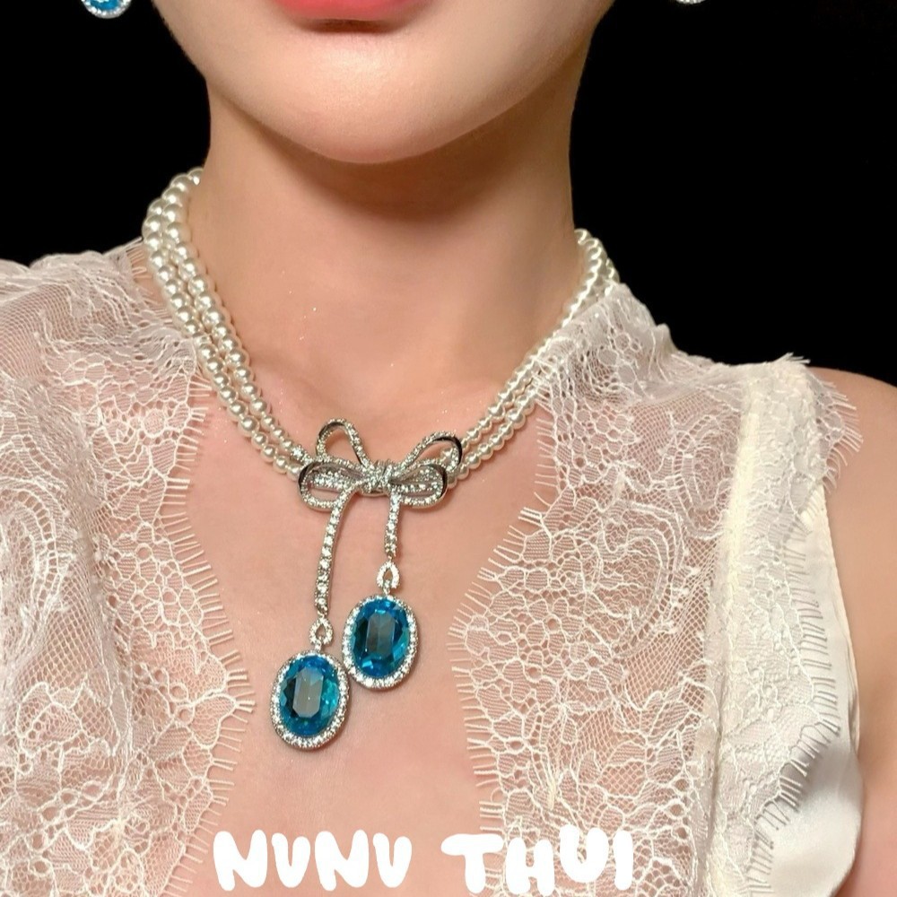 3264nv hot bar bowknot water drop double-layer bead necklace ~ no box