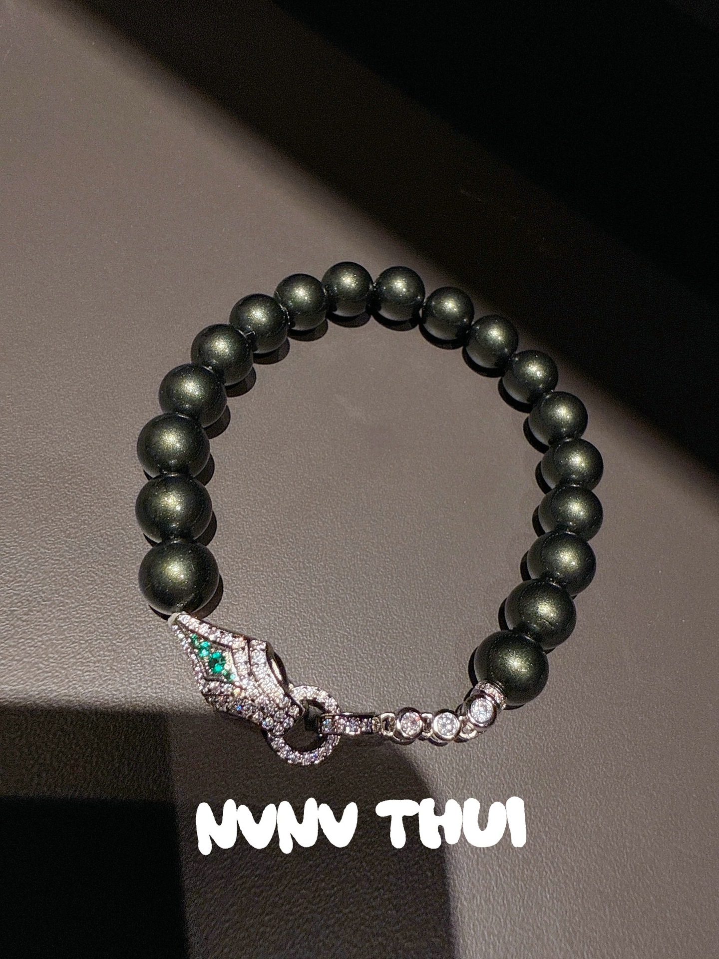 3572lz large bead [deep peacock green] spirit snake bracelet – no box