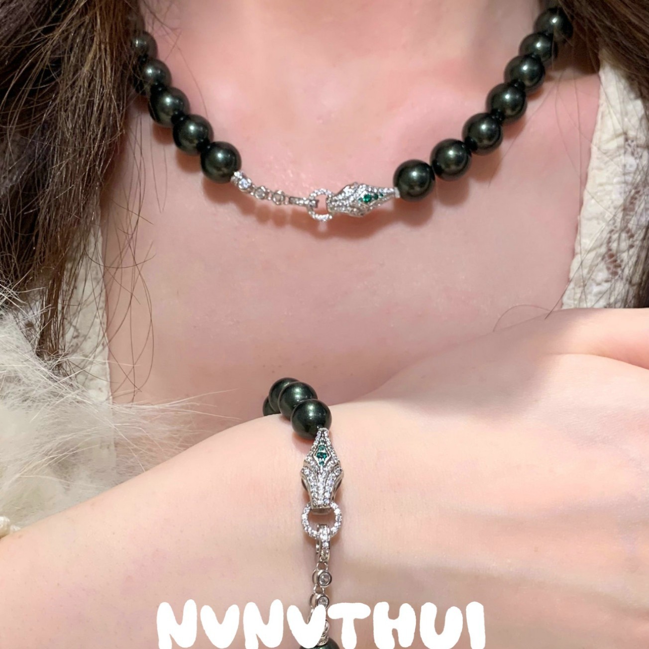3572lz larger size [white pearl] spirit snake necklace ~ no box