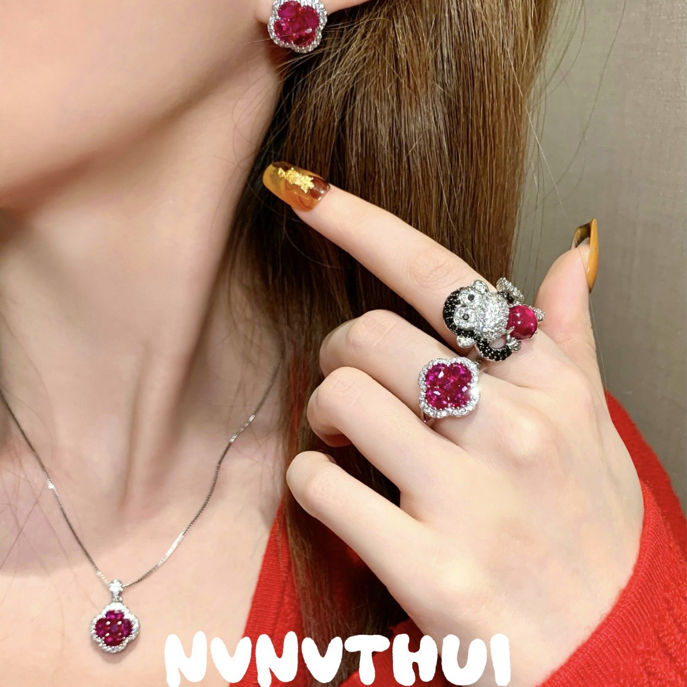 3571fll [rouge red] flowers open ring ~ no box