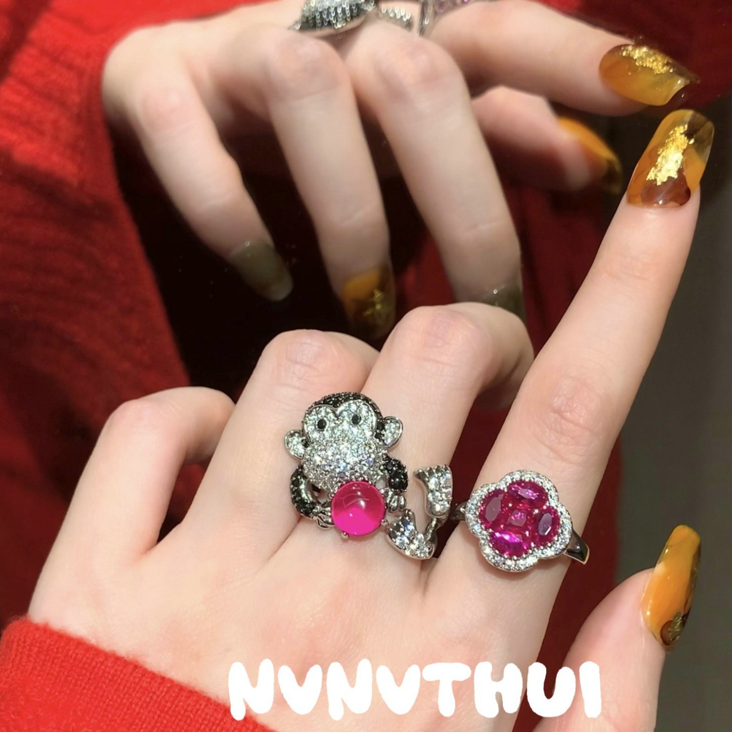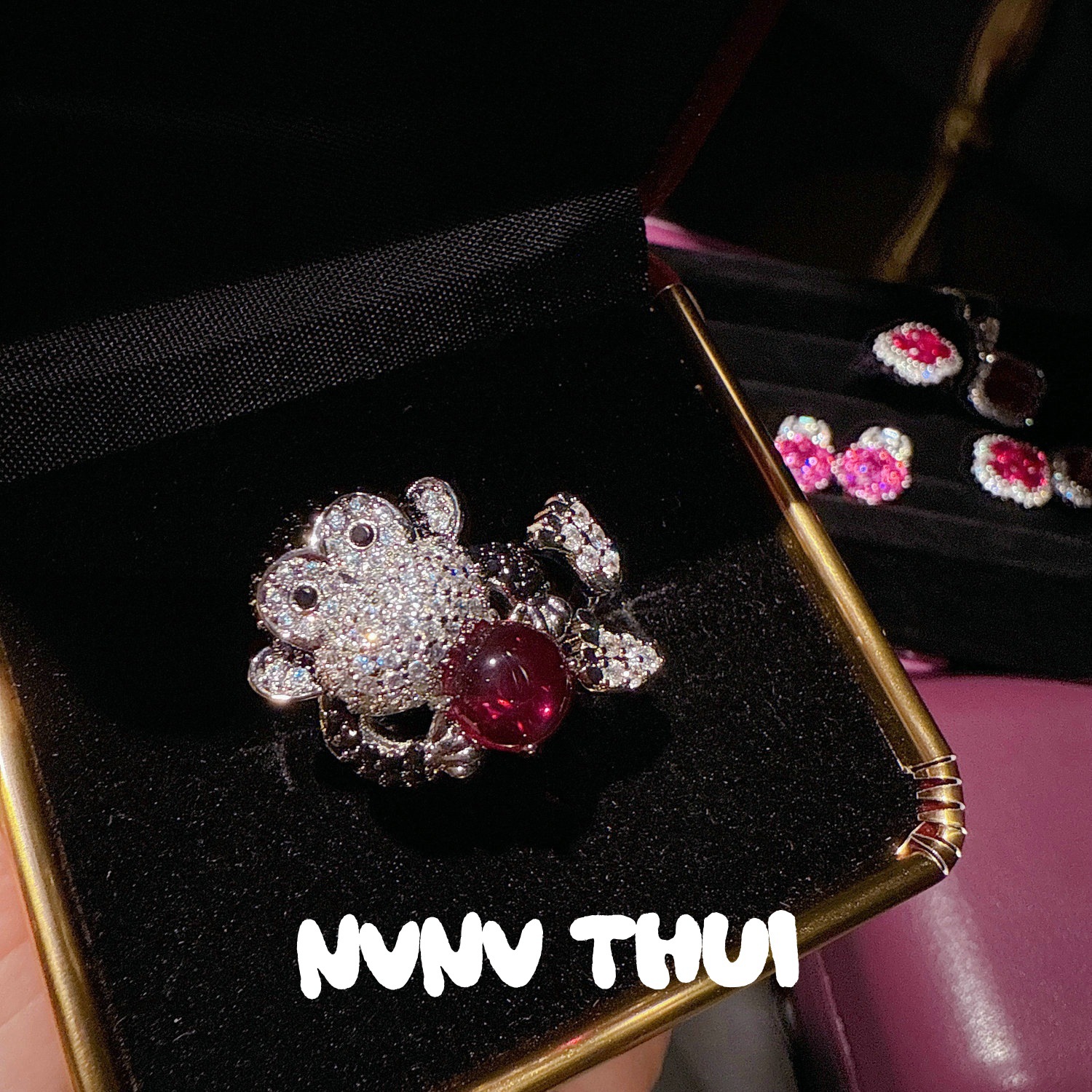 3571fll hand shining diamond embedded [monkey] brown sugar tower open ring ~ no box