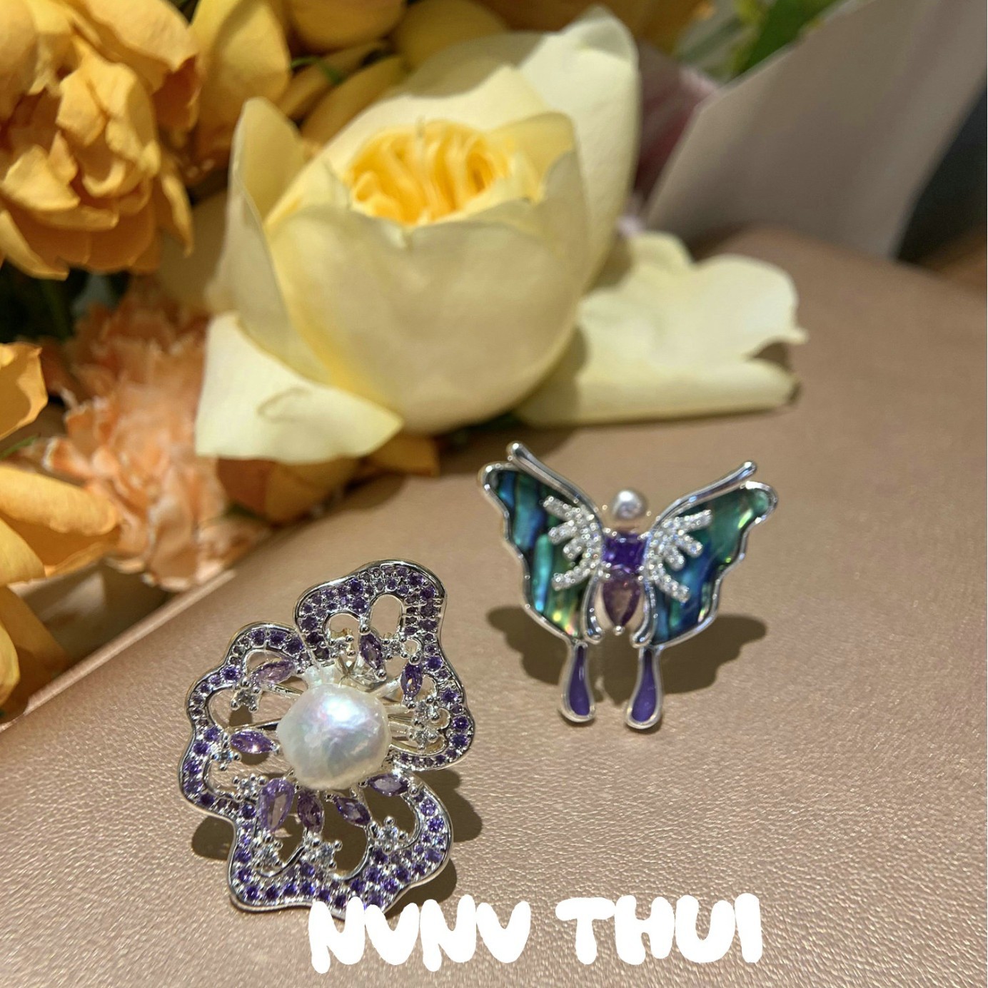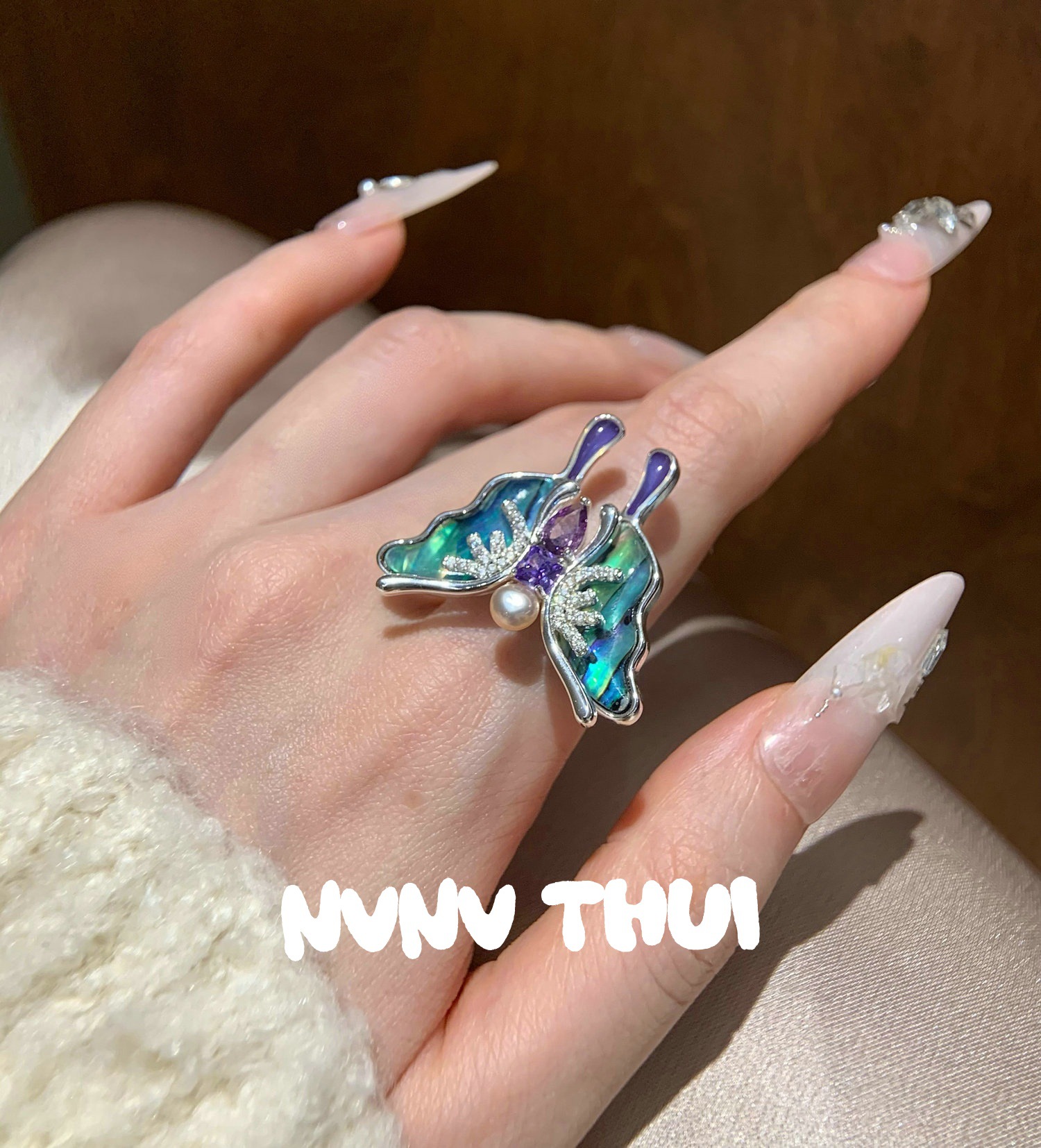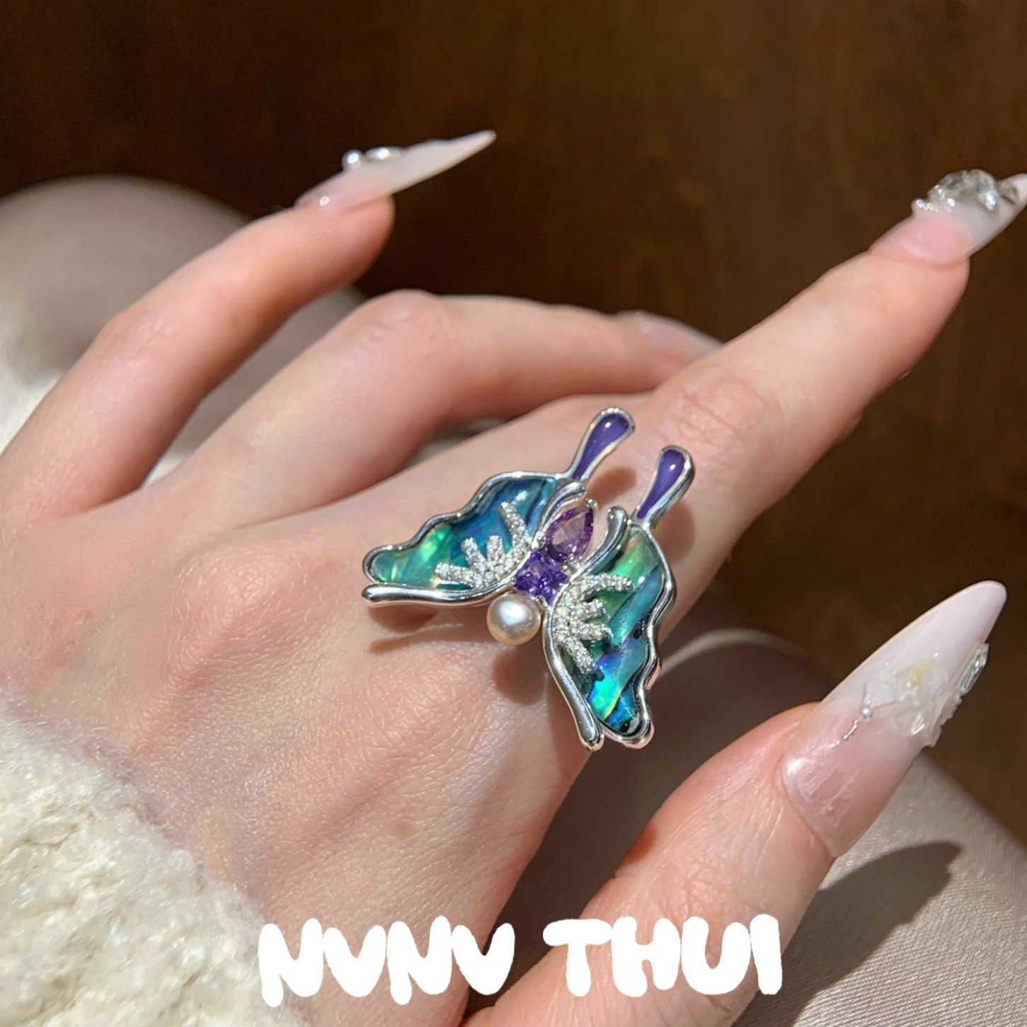 3558qip [abalone fritillary butterfly] open ring ~ no box