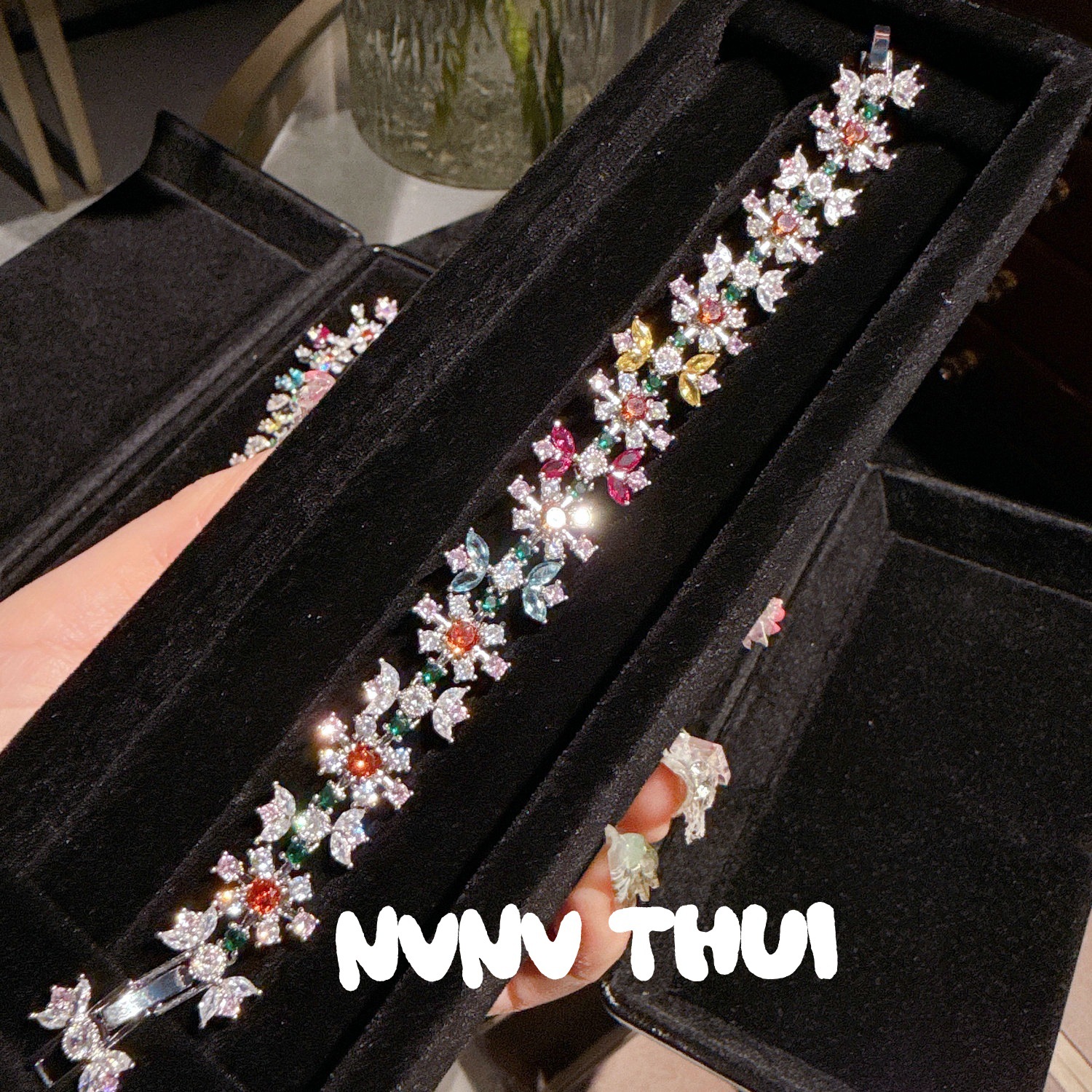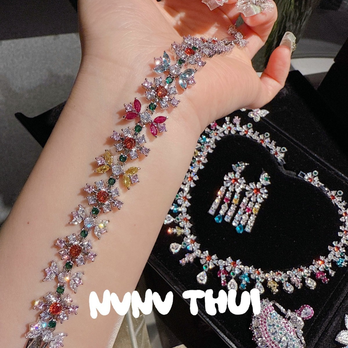 3563qip [colorful crystals blossoms] heavy-laden bracelet ~ no box