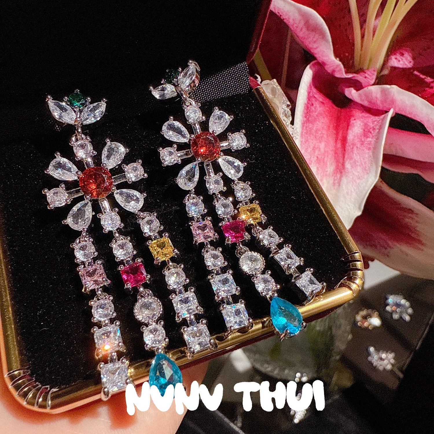 3563qip [colorful crystals flowers] water drop earrings ~ no box