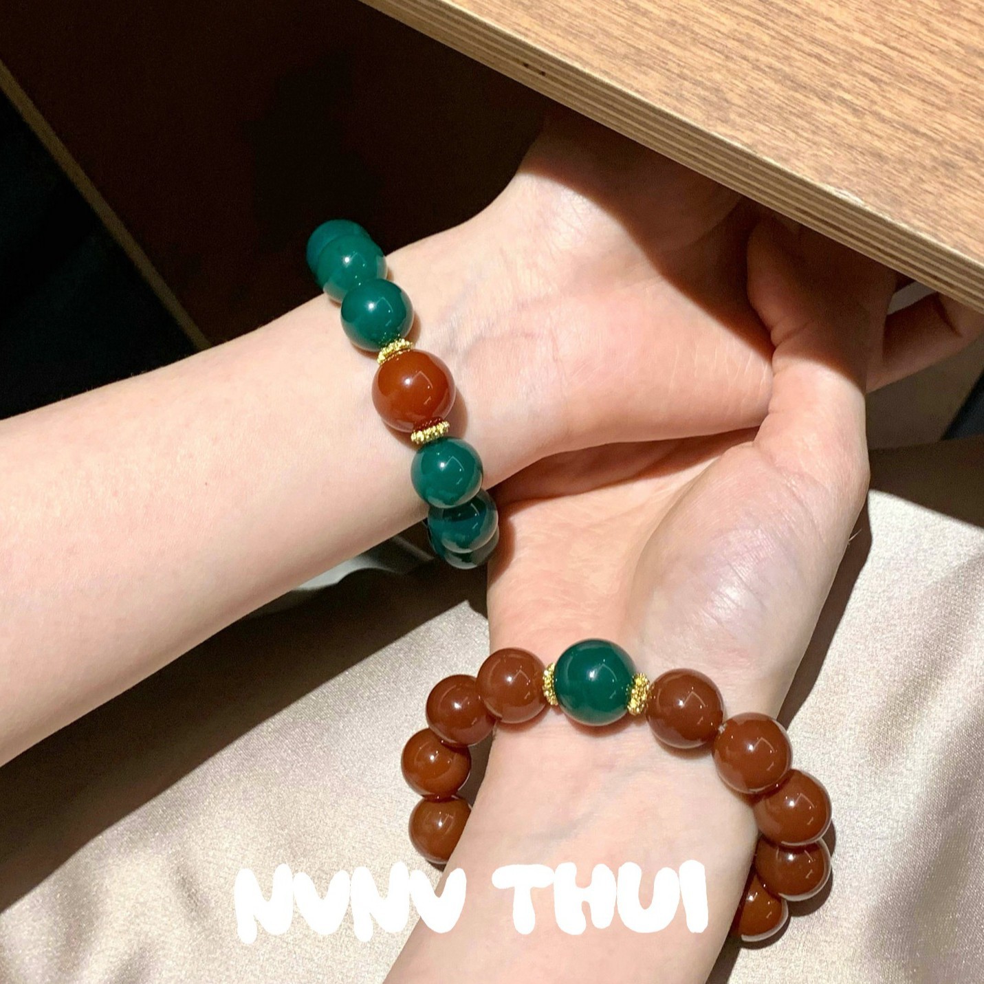 3492qip [green beads] bracelet ~ no box