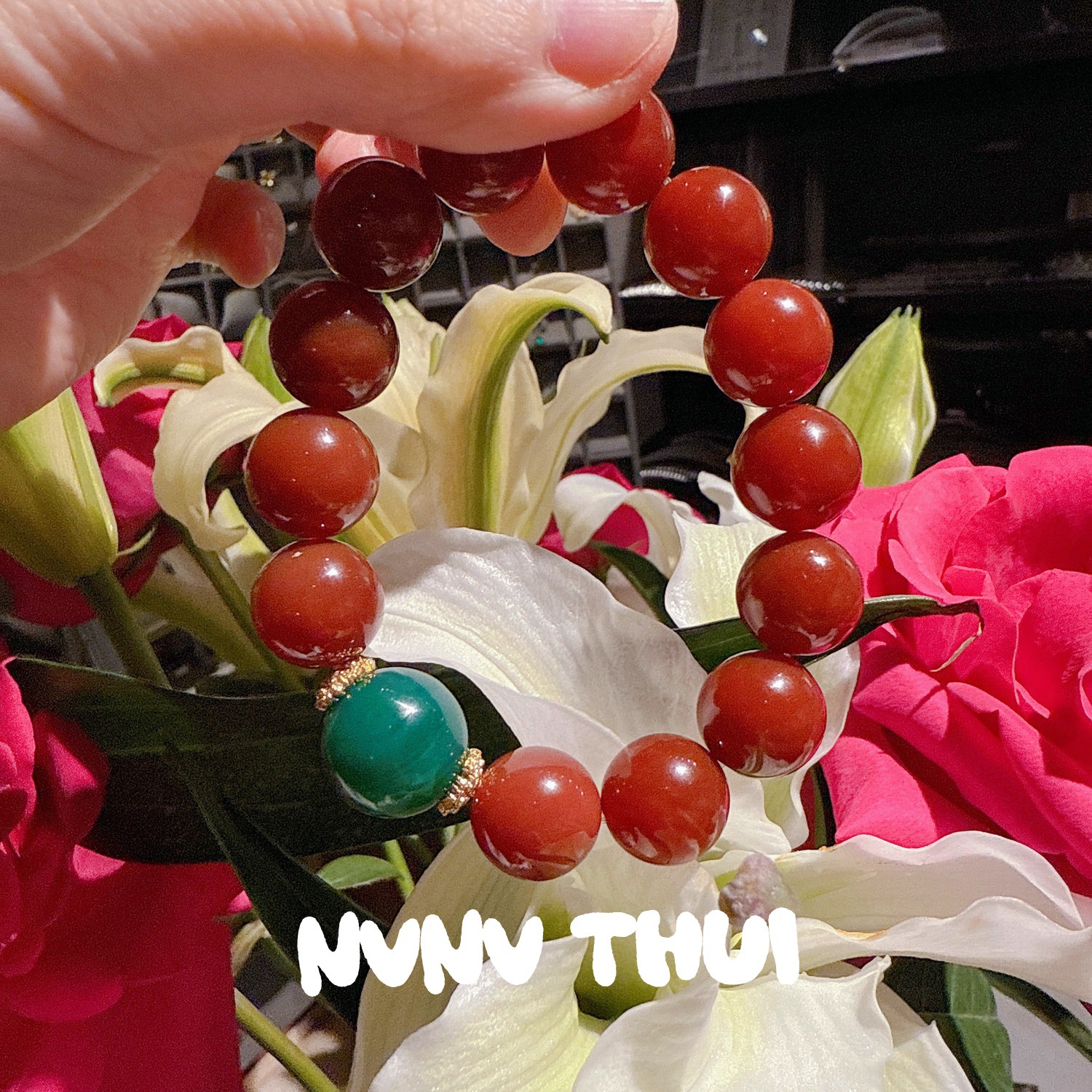 3492qip [red beads] bracelet ~ no box