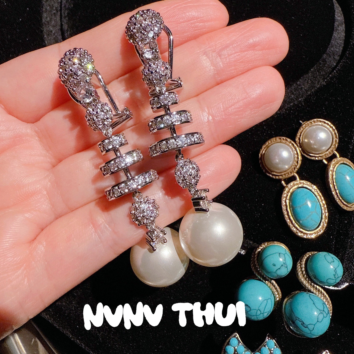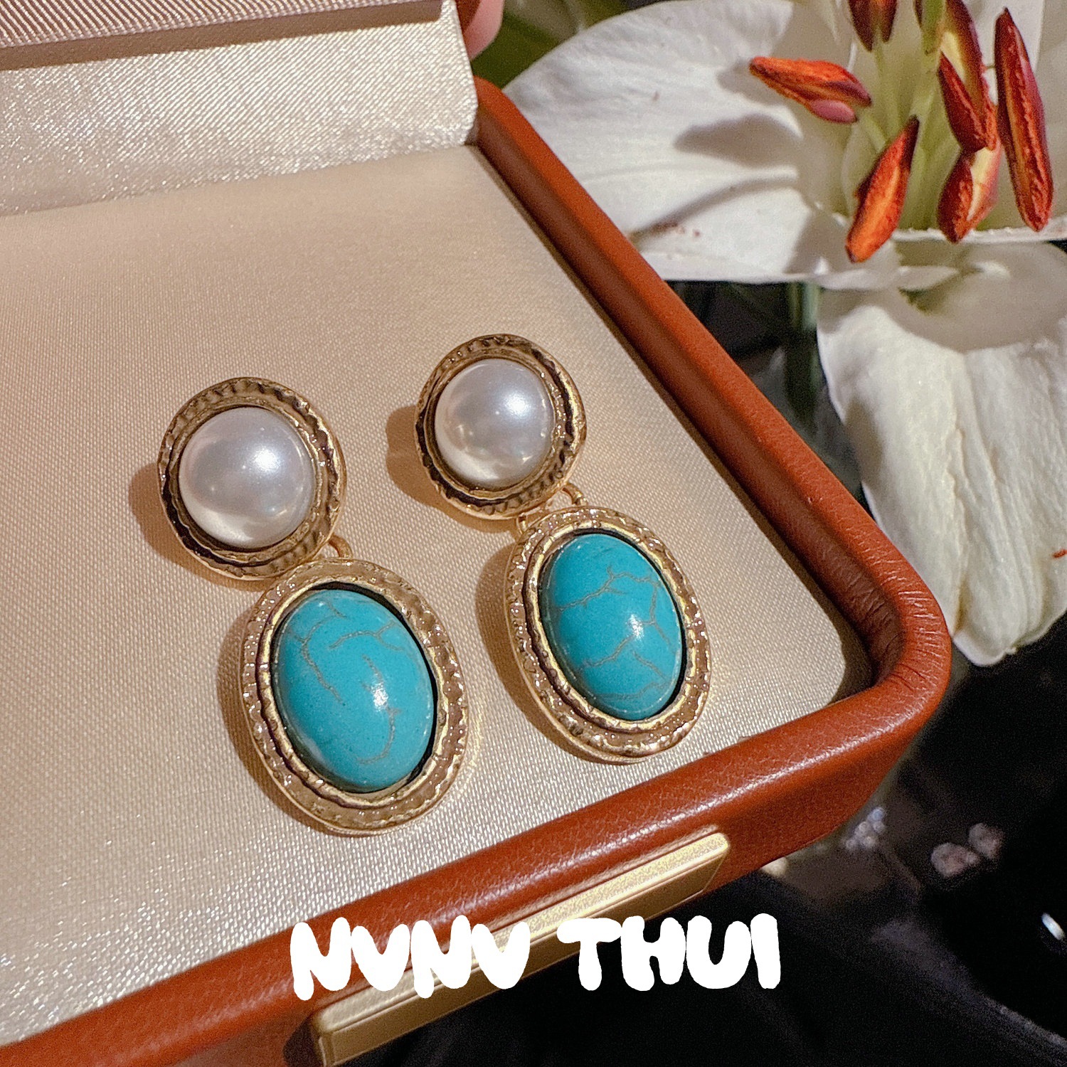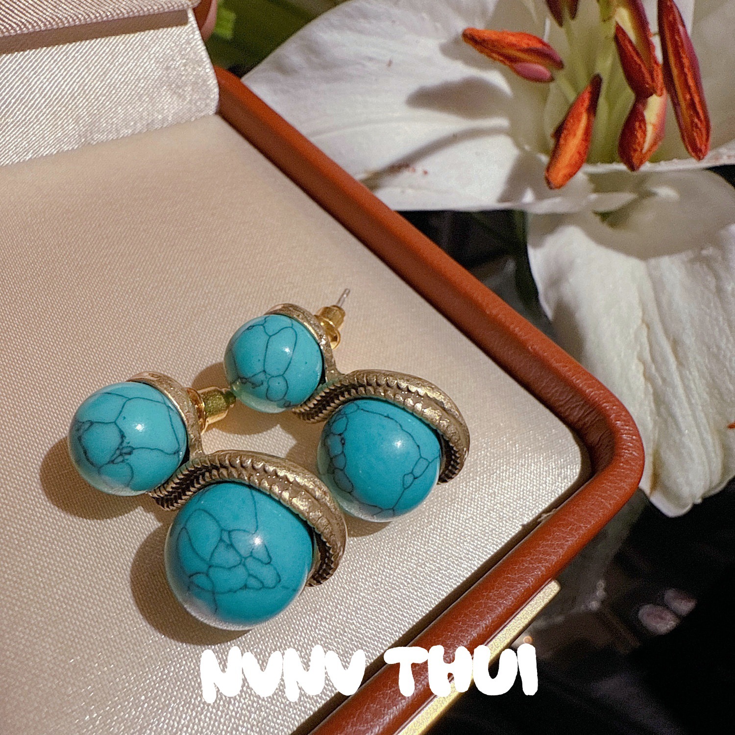 3503ou [glass sea] artificial blue turquoise retro earrings – no box
