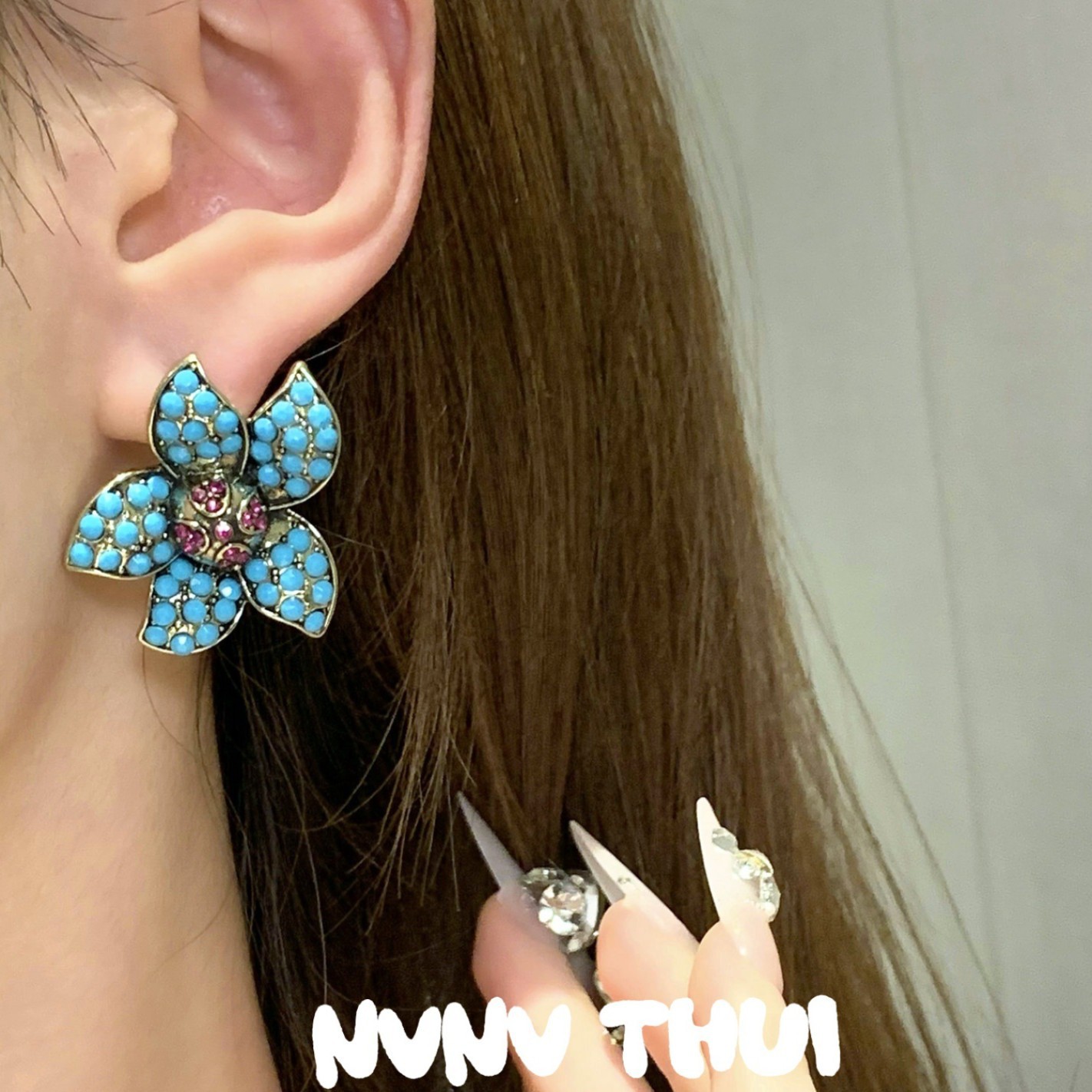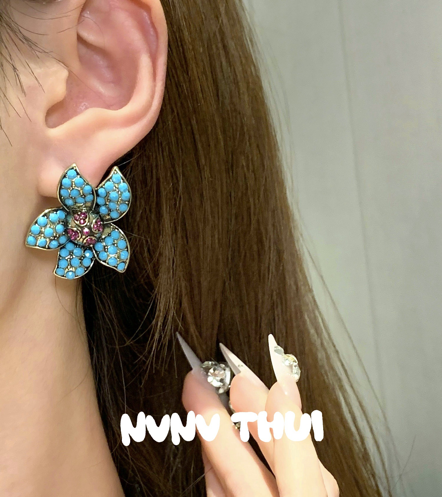 3503qip [xianyuan shicui] artificial blue pine flower-de-luce earrings ~ no box