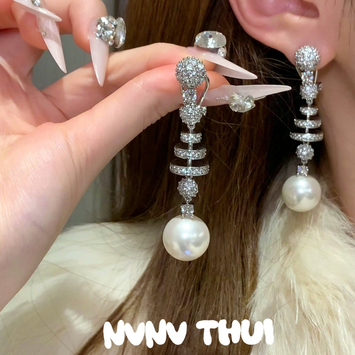 3503ou [bone] snake bone vintage bead earrings ~ no box