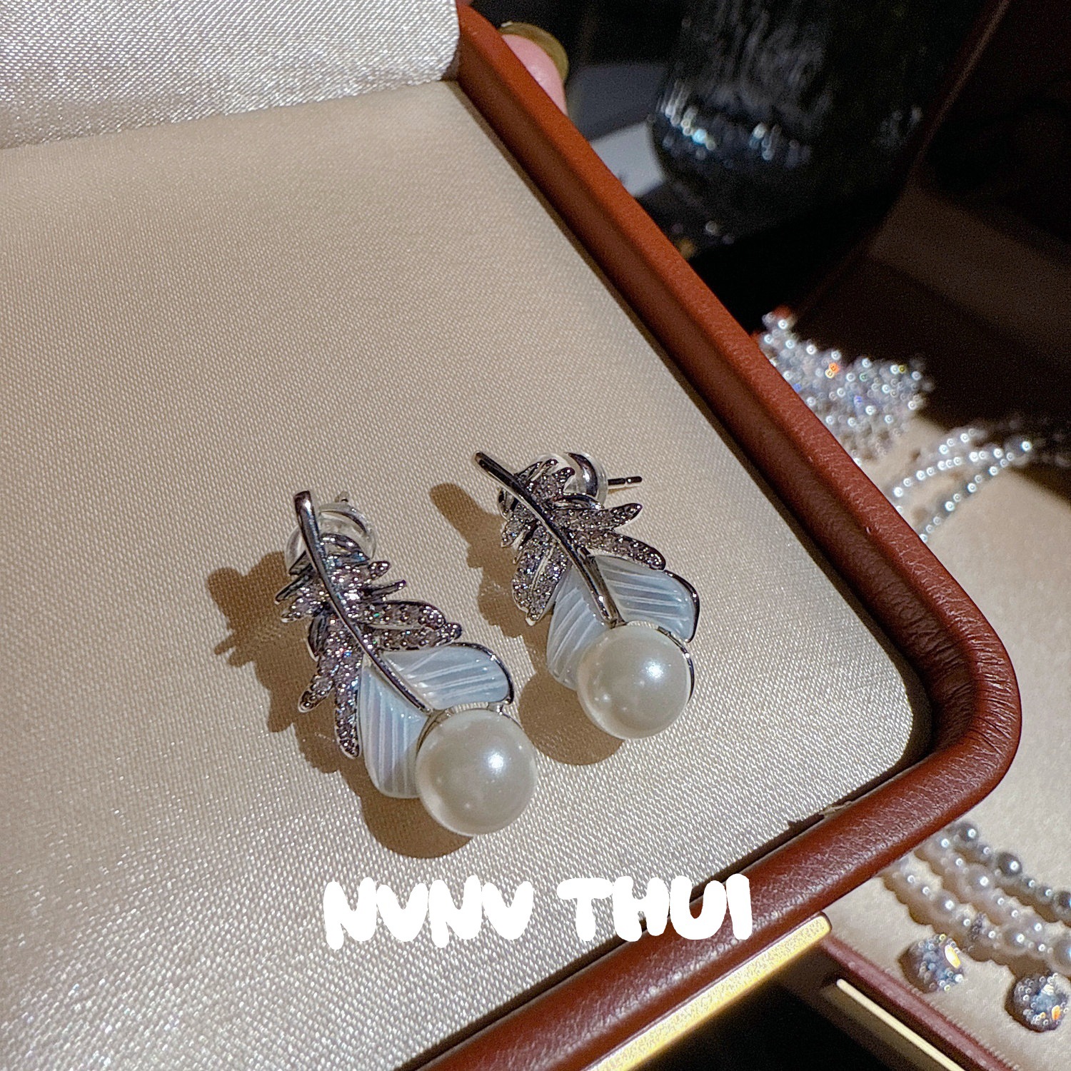 3489nv [fritillary feather] bead stud earrings ~ no box