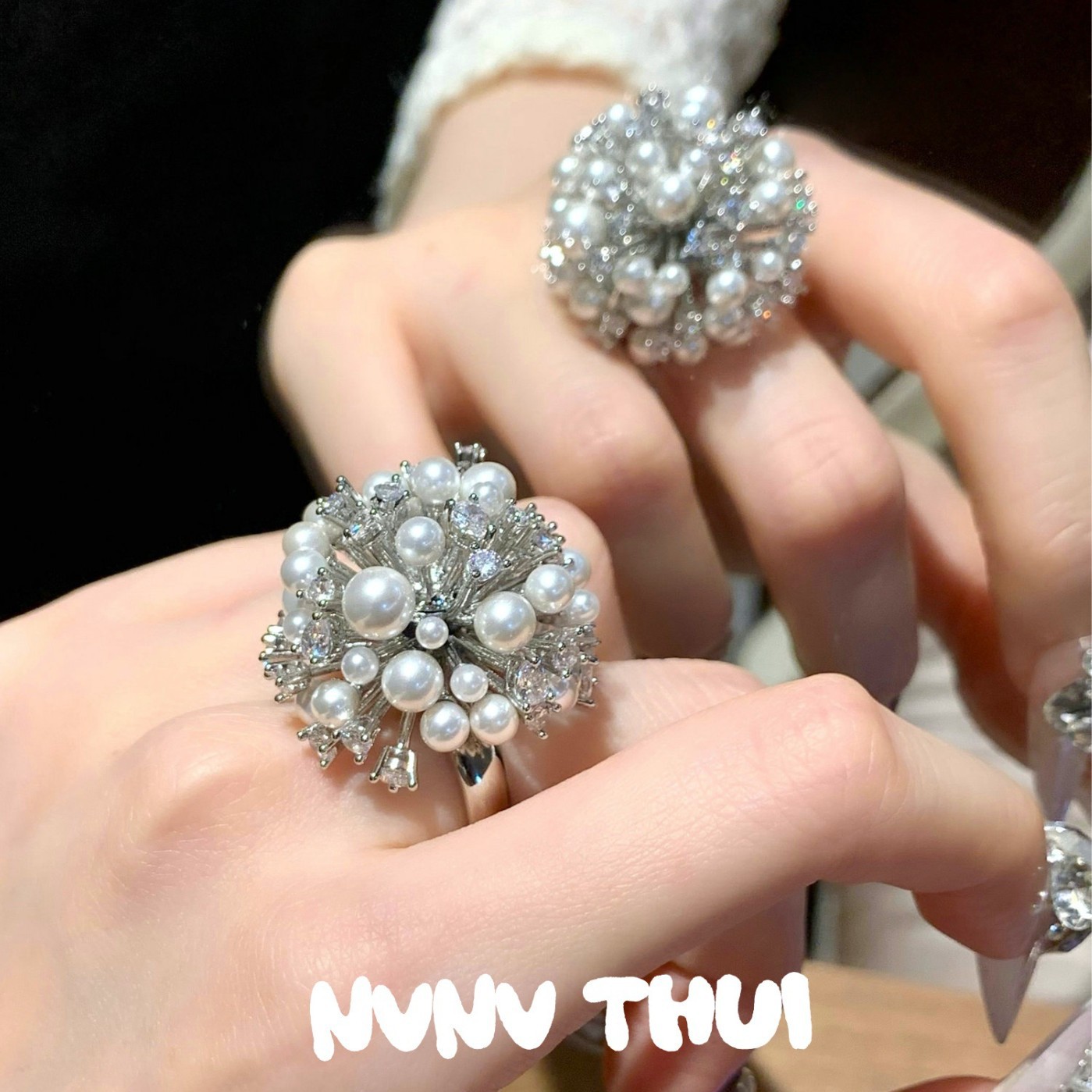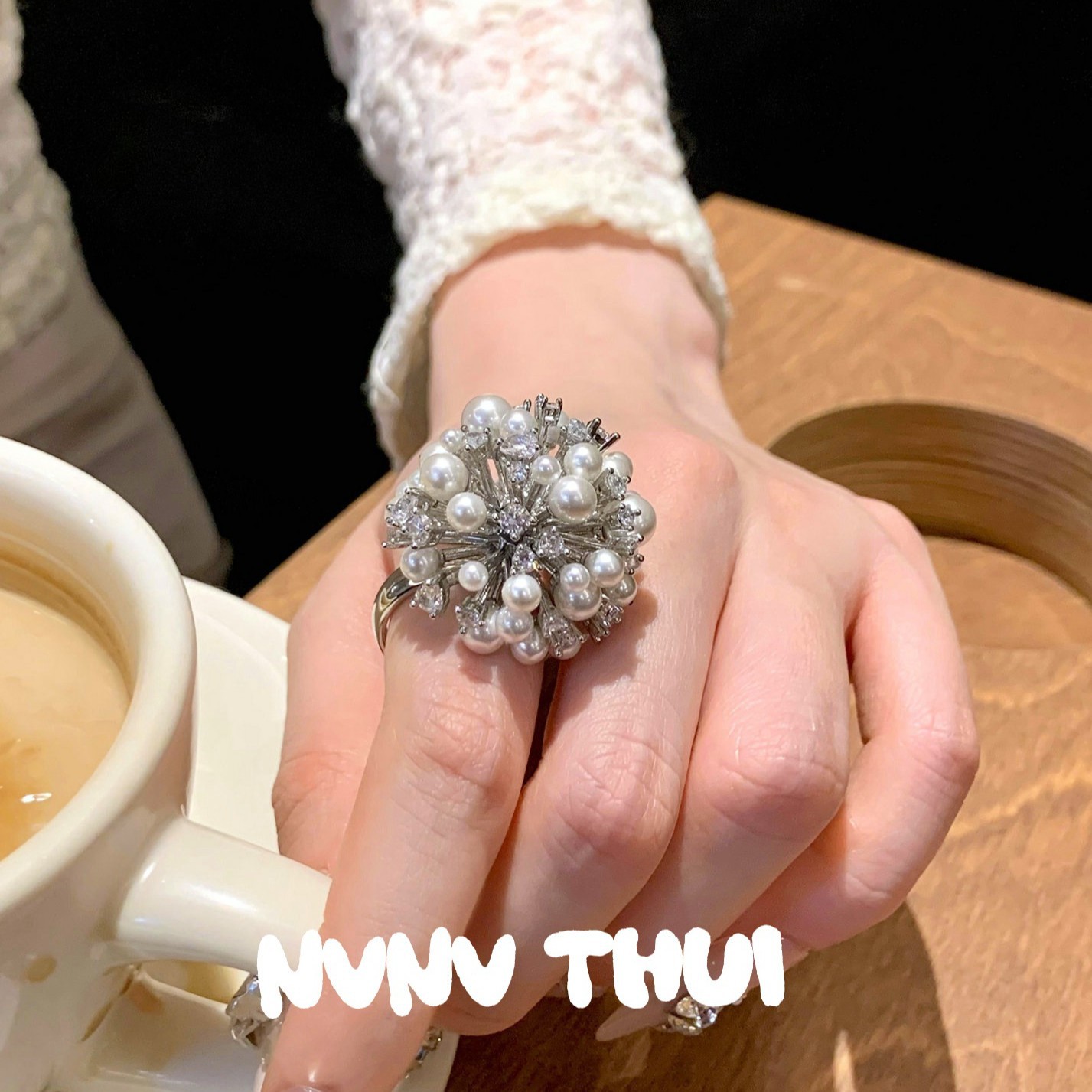 3489nv [salt floral ball] artificial shell pearls ring ~ no box