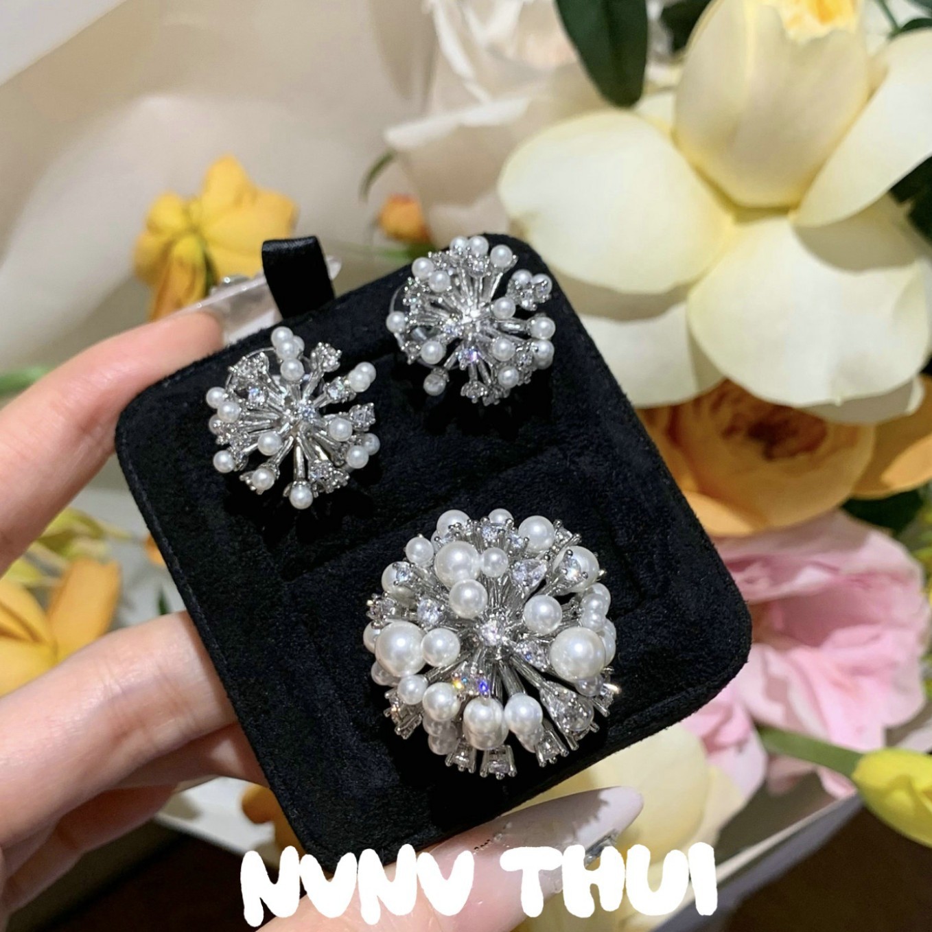 3489qip-d6j082 [salt floral ball] manual shell pearl earrings ~ no box