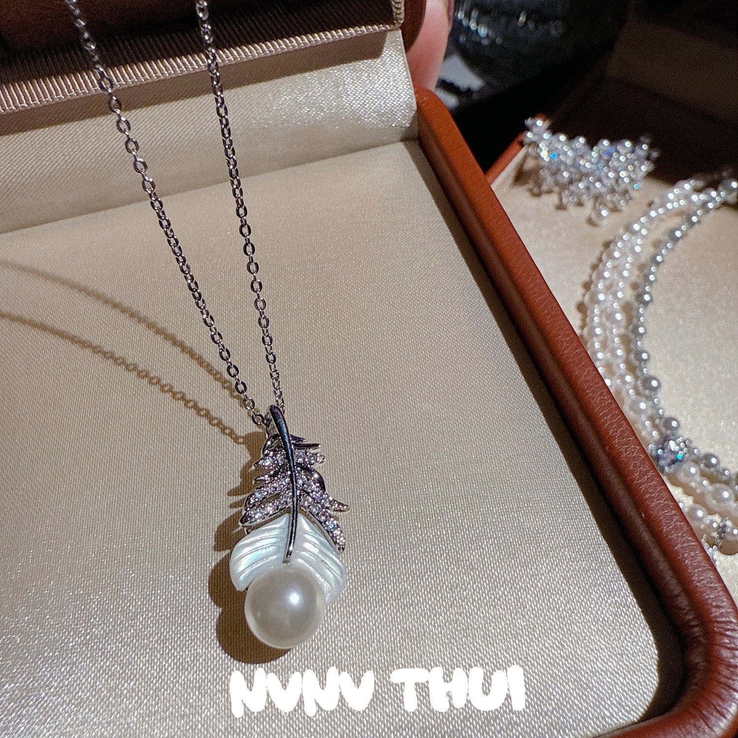3489nv [fritillary feather] bead necklace ~ no box