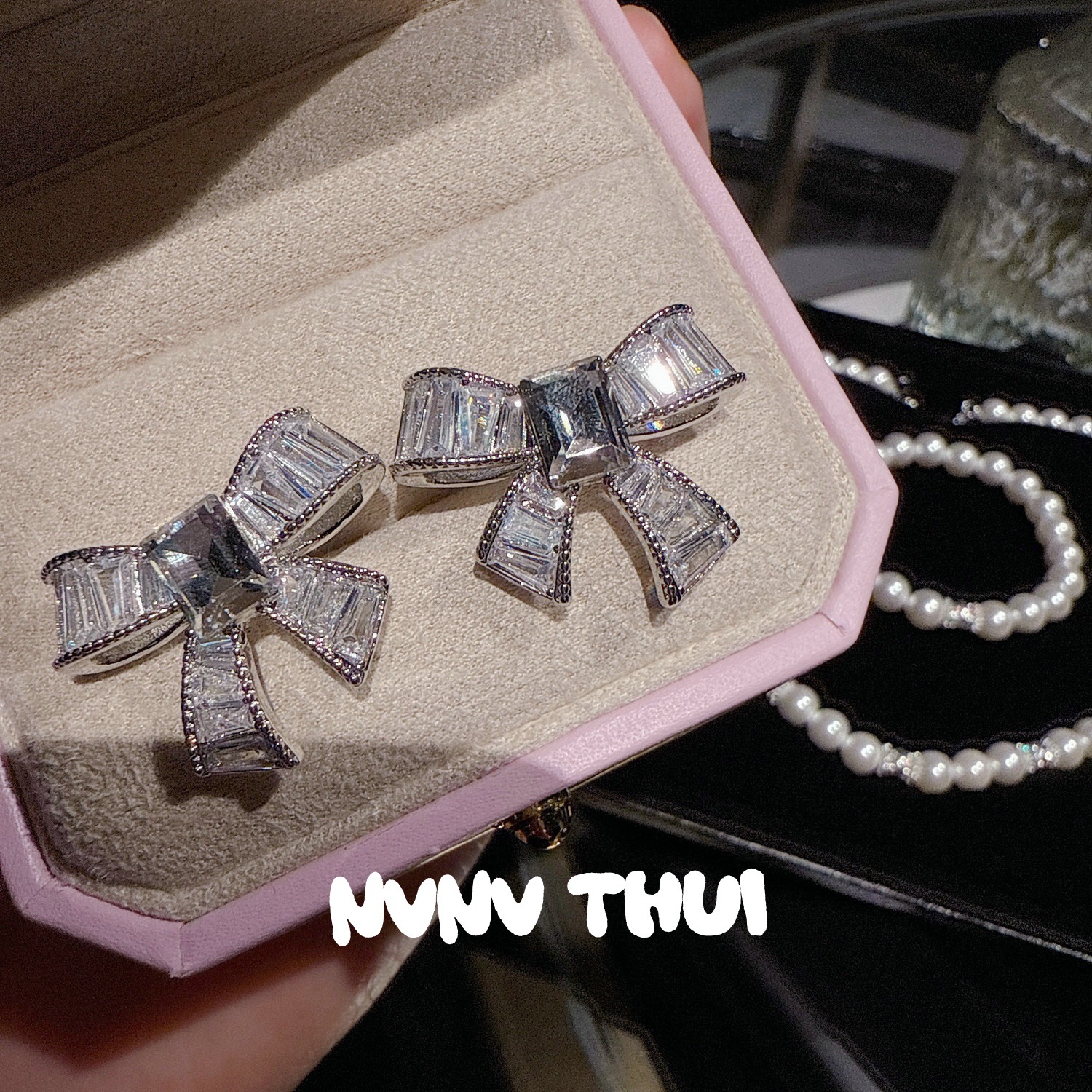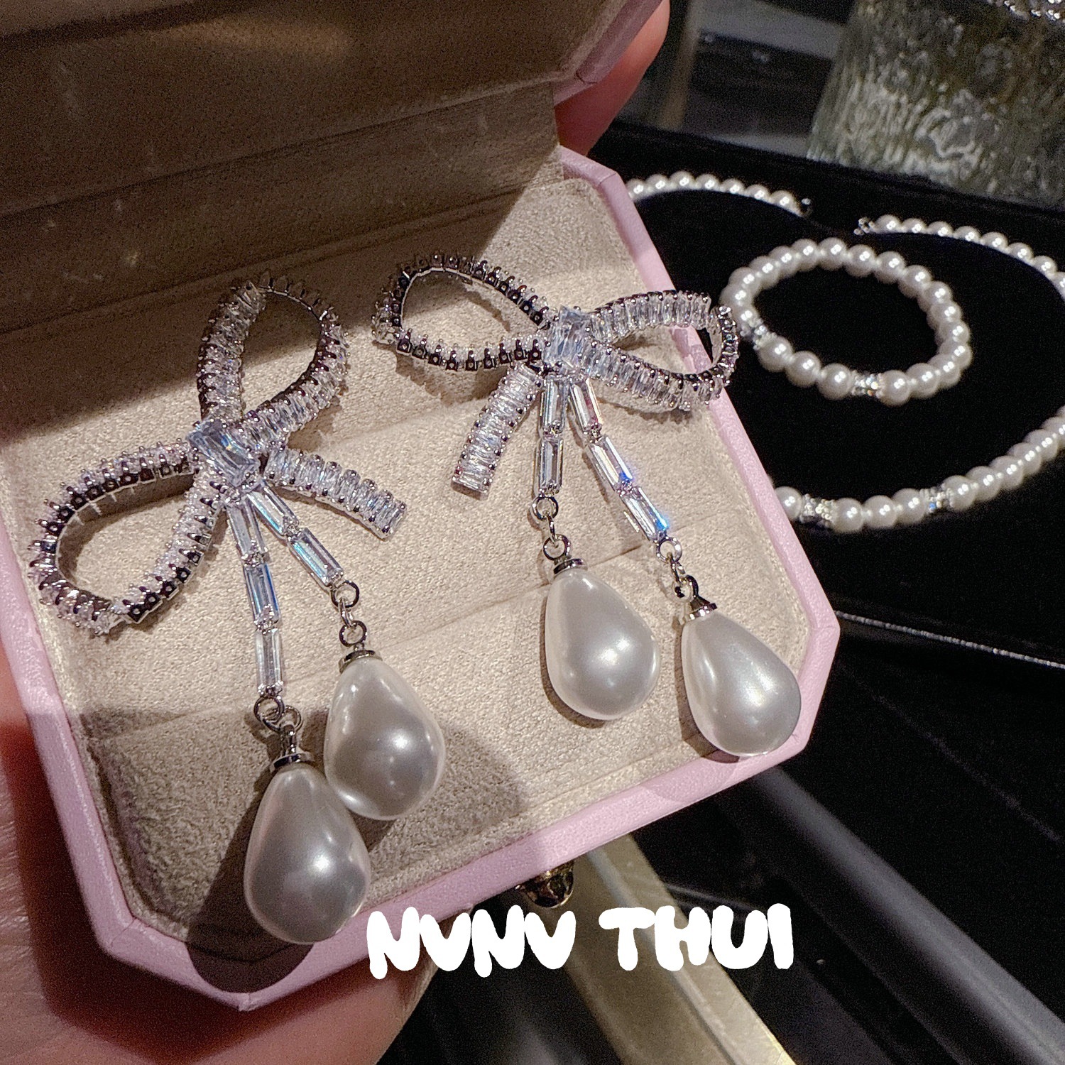 3111qip [bow-tie waterdrop beads] earrings ~ no box