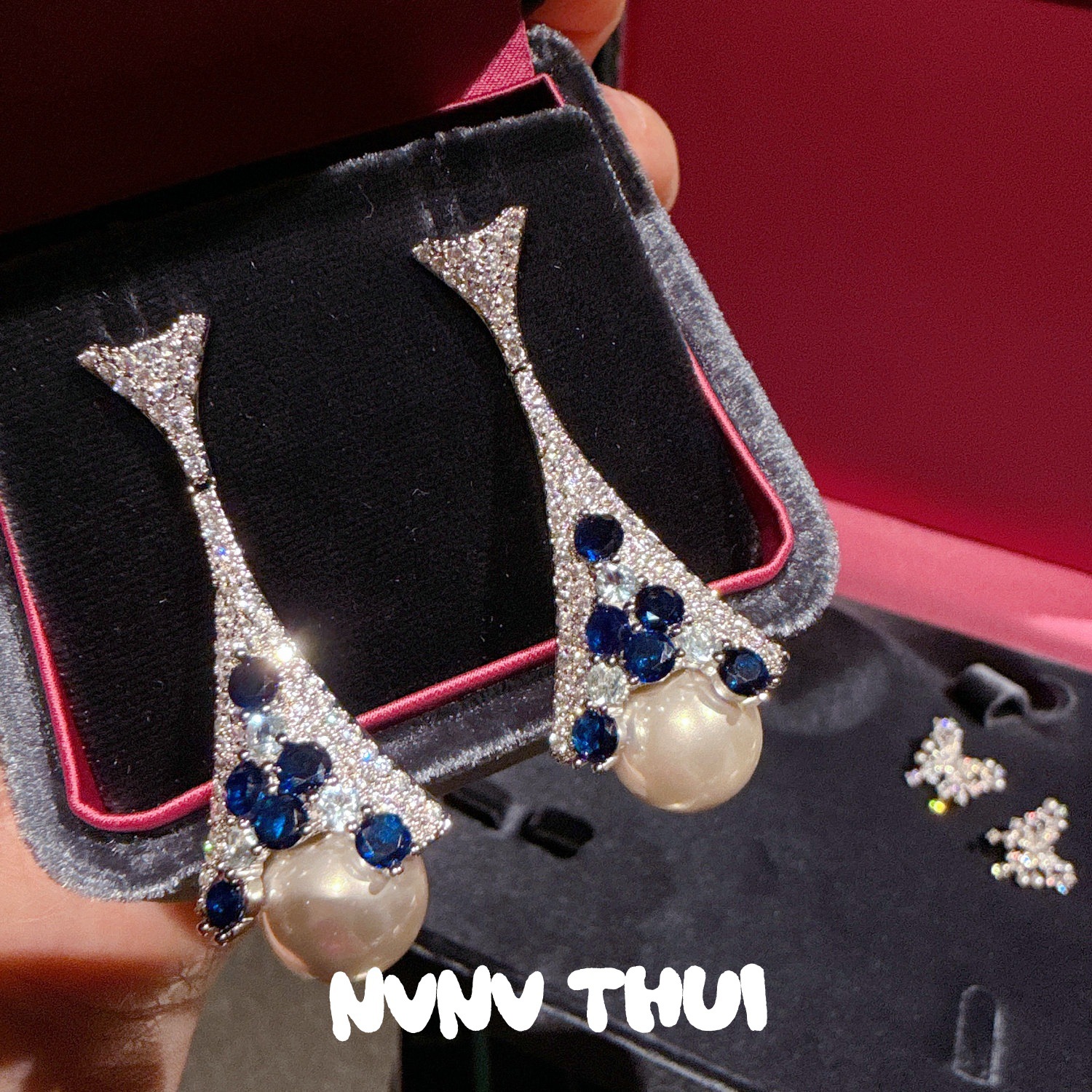 1001ll [spot drill blue] iron tower bead earrings ~ no box