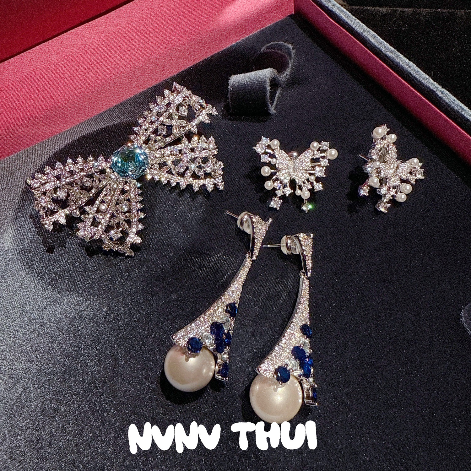 1001ll [lace butterfly] ice flower cut blue zircon brooch ~ no box